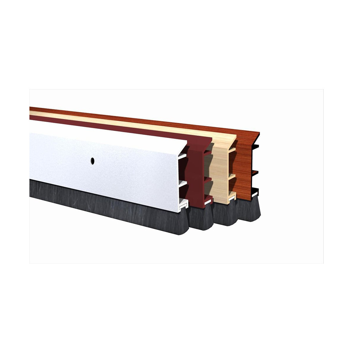 Bas de porte PVC rigide muni d'une brosse extra souple en polypropylène traitée au silicone - Fixation par vis fournies - Tout type de sol - Longueur : 100 cm - Coloris : Marron