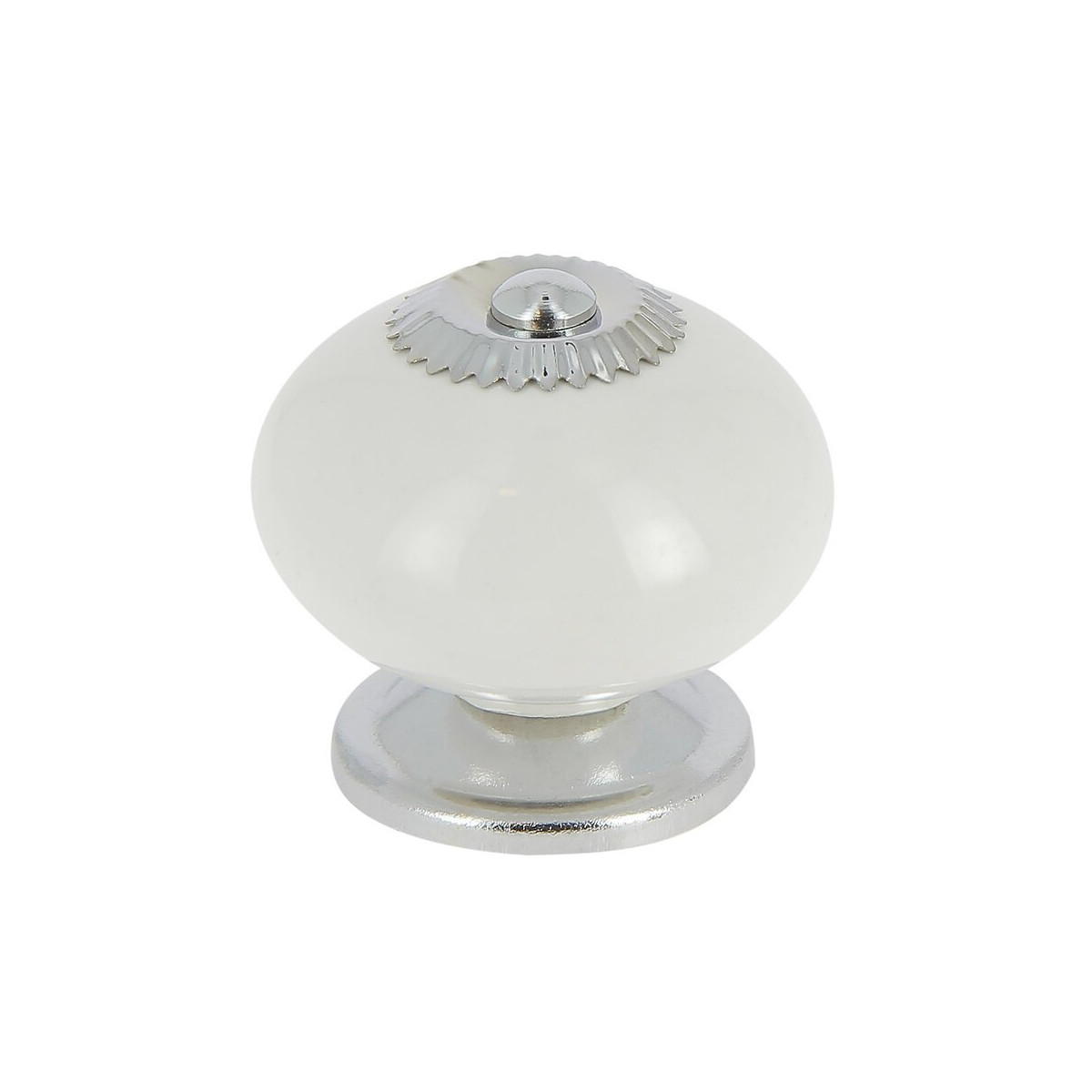 Lot 4 boutons 40mm céramique blanc/nickelé