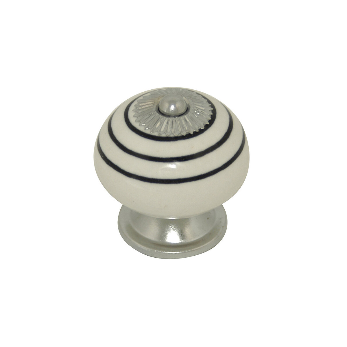 Bouton diamètre 40 mm céramique blanc raye noir/nickelé.Spécifications techniques