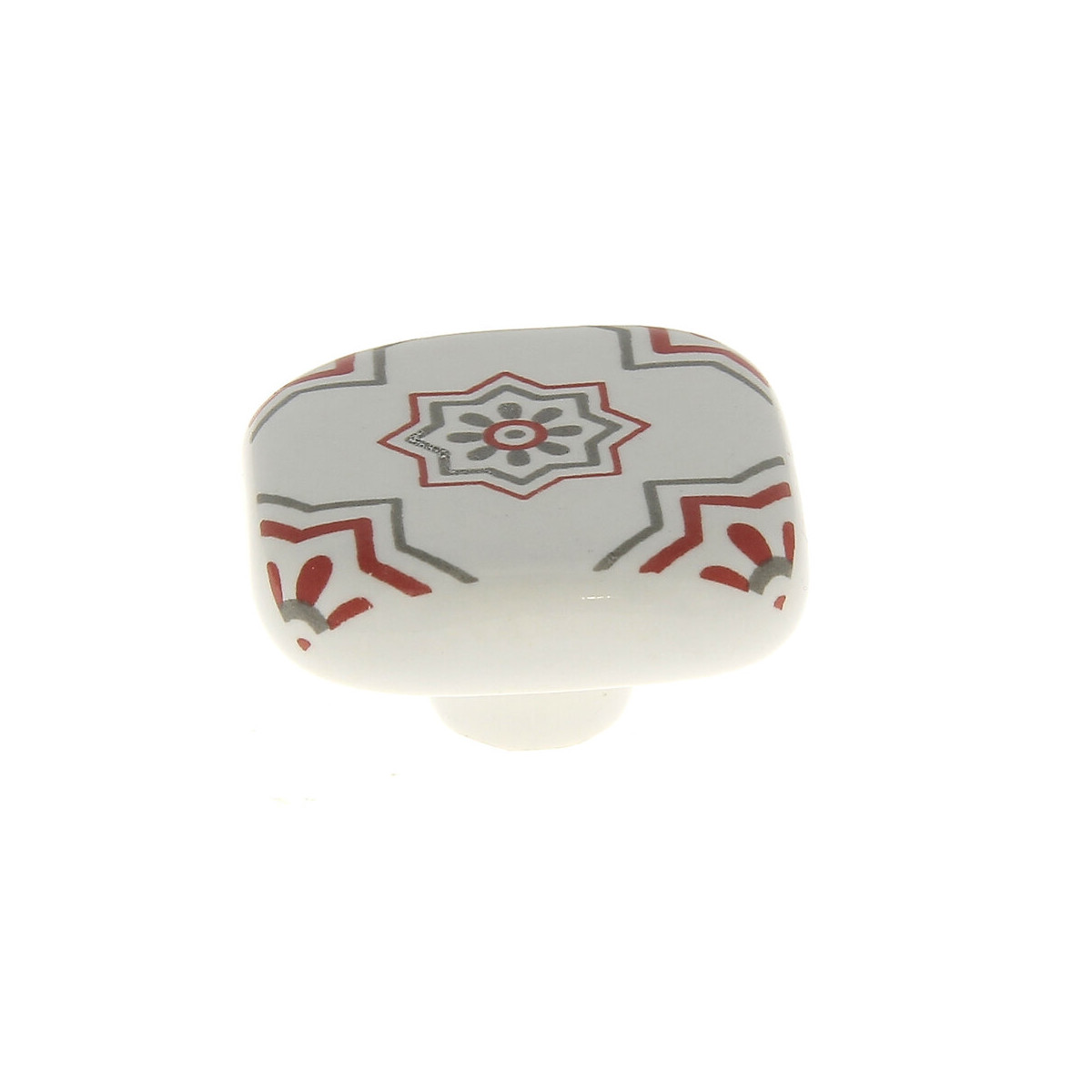 Bouton carré 40 mm céramique motif blanc rouge.Spécifications techniques