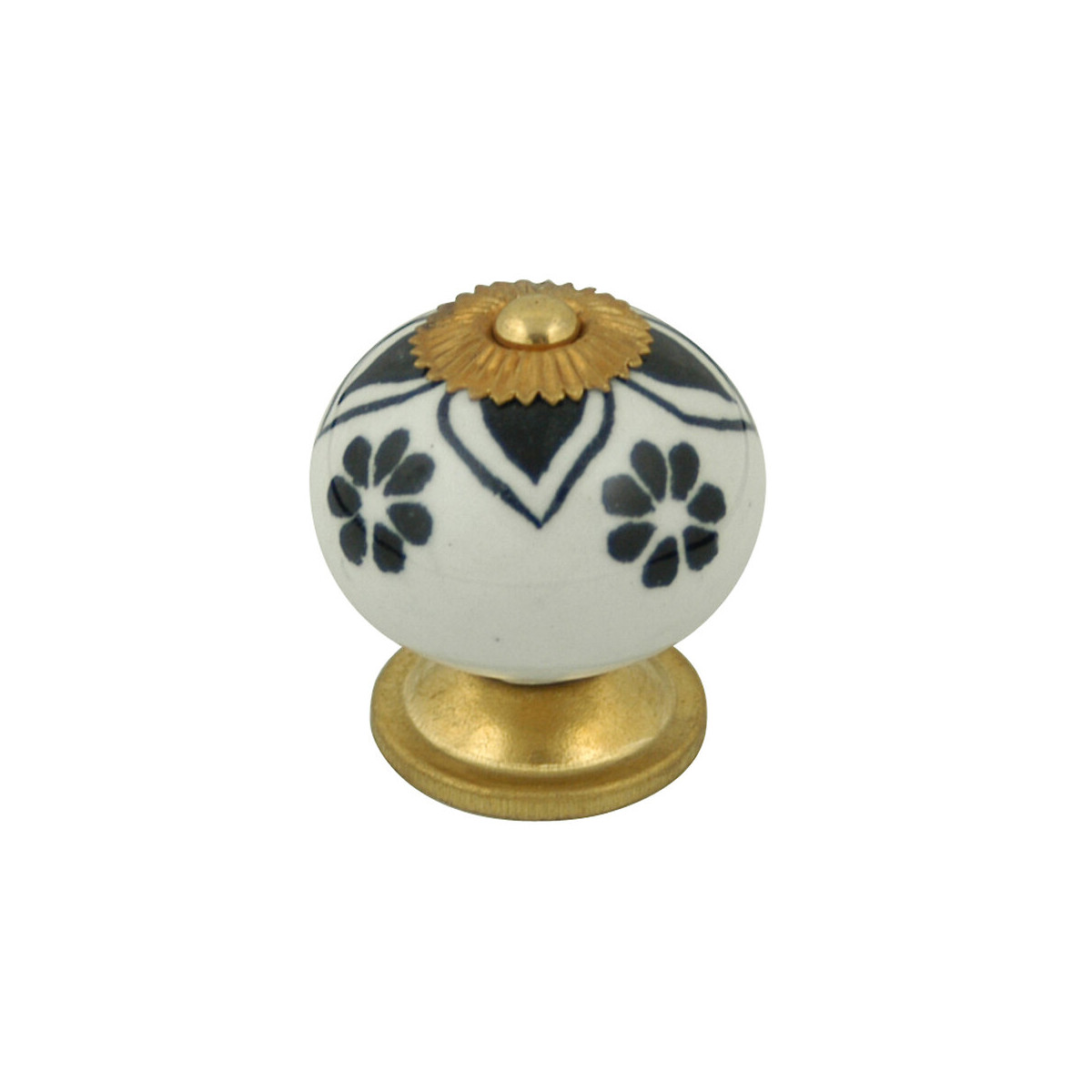Bouton diamètre 40 mm céramique blanc motif noir/laitonné.Spécifications techniques