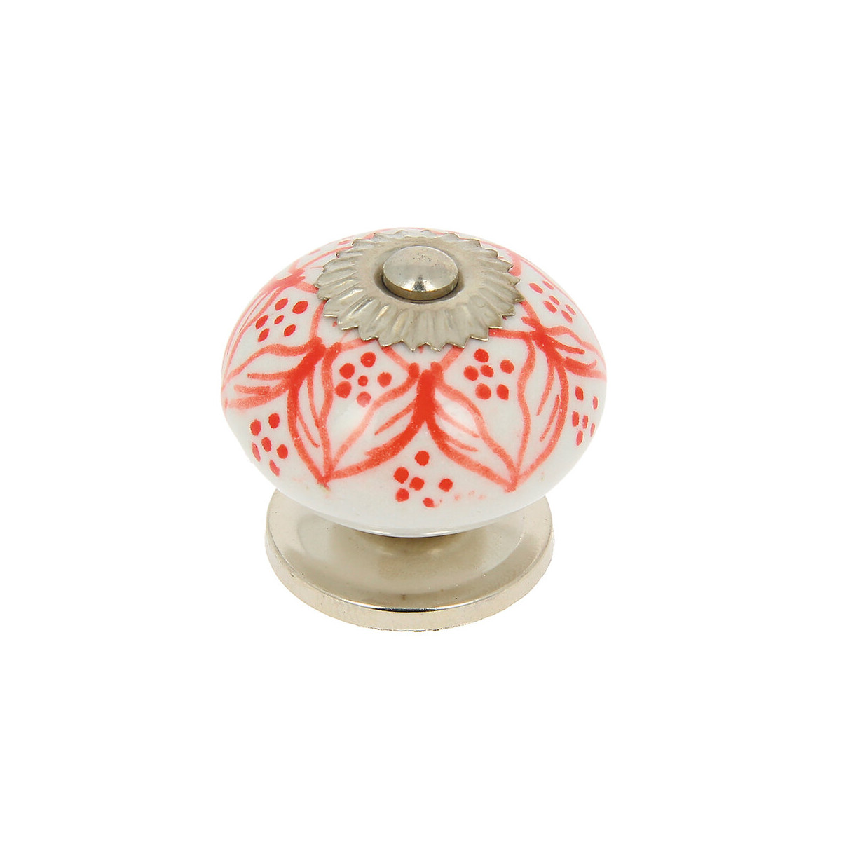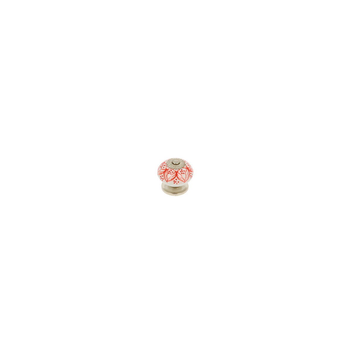 Bouton diam 40mm céramique blanc motif rouge/nickel