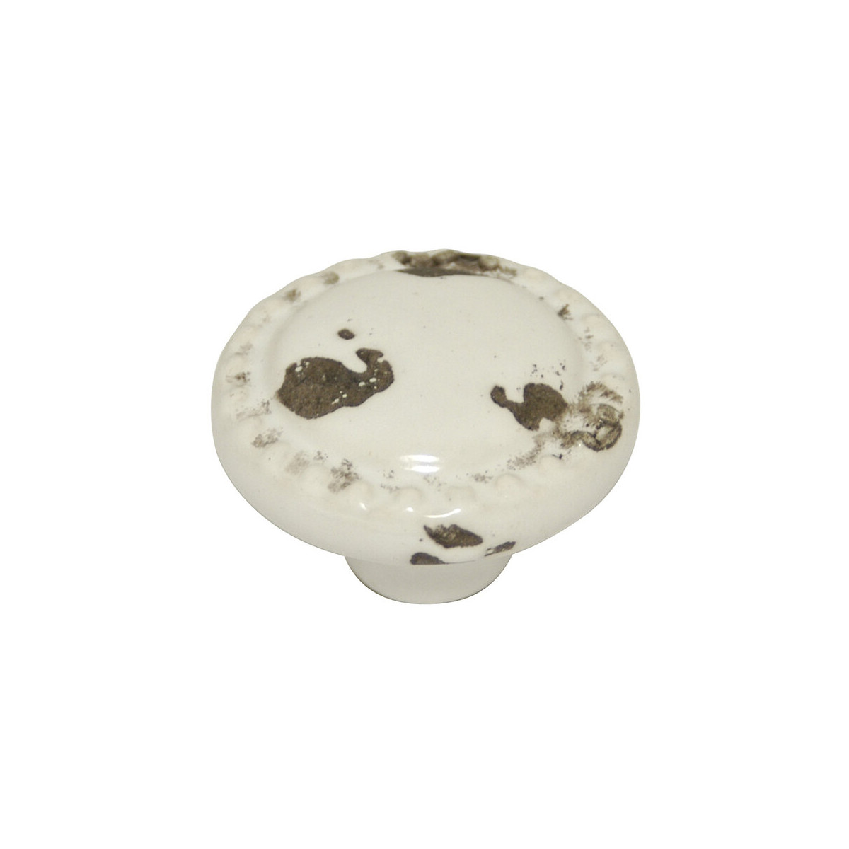 Bouton rond perle 40 mm céramique blanc antique.Spécifications techniques