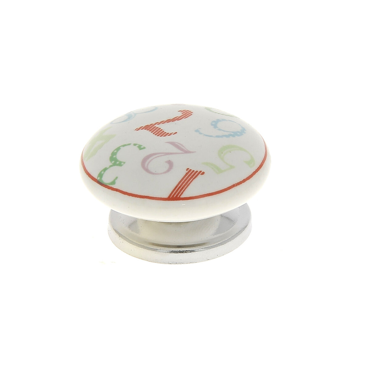 Bouton rond diamètre 38 mm céramique blanc motif chiffres.Spécifications techniques