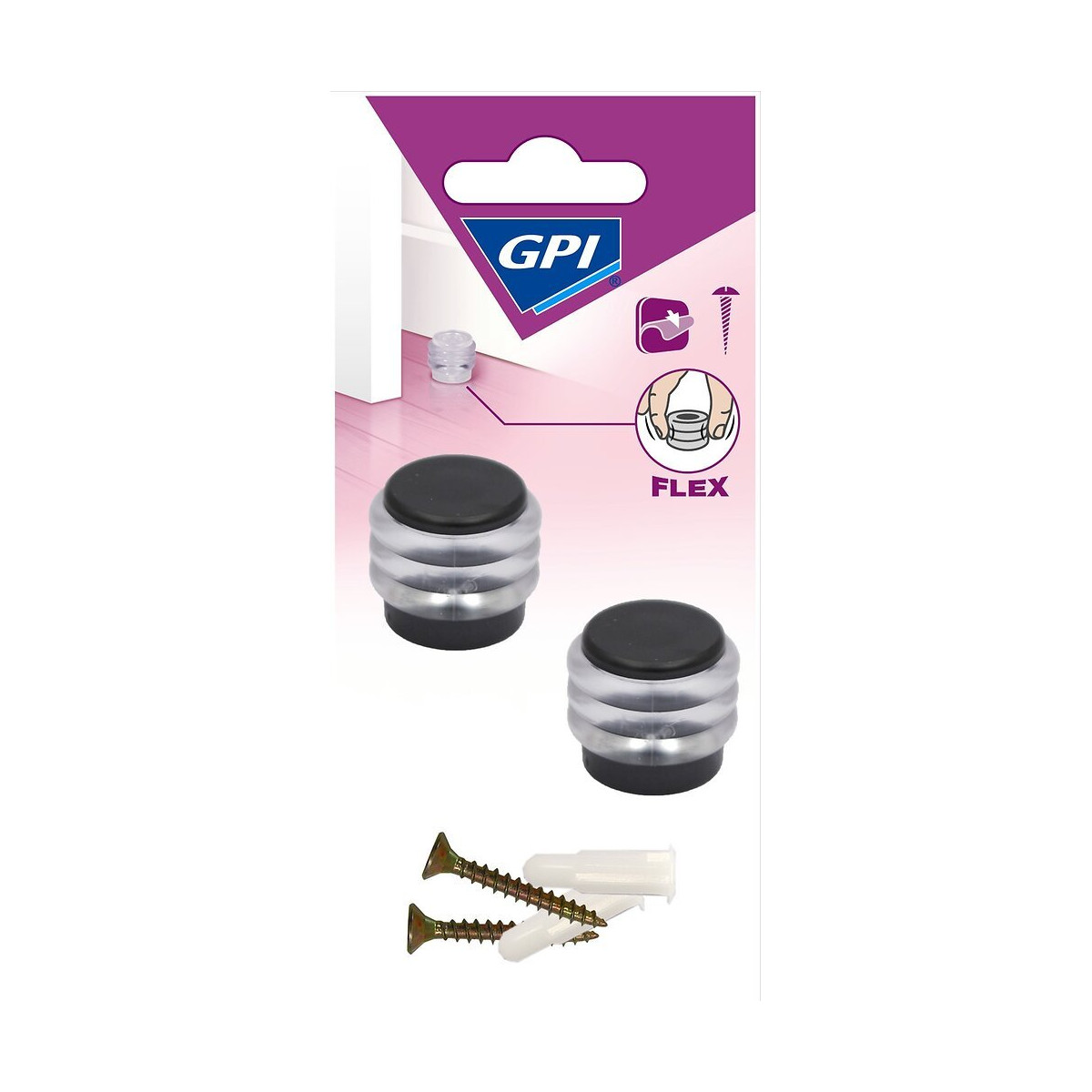 Butée plastique avec anneaux amortisseurs. Pour protéger le mur et la poignée. Fixation au sol adhésif ou à visser.Spécifications techniques
