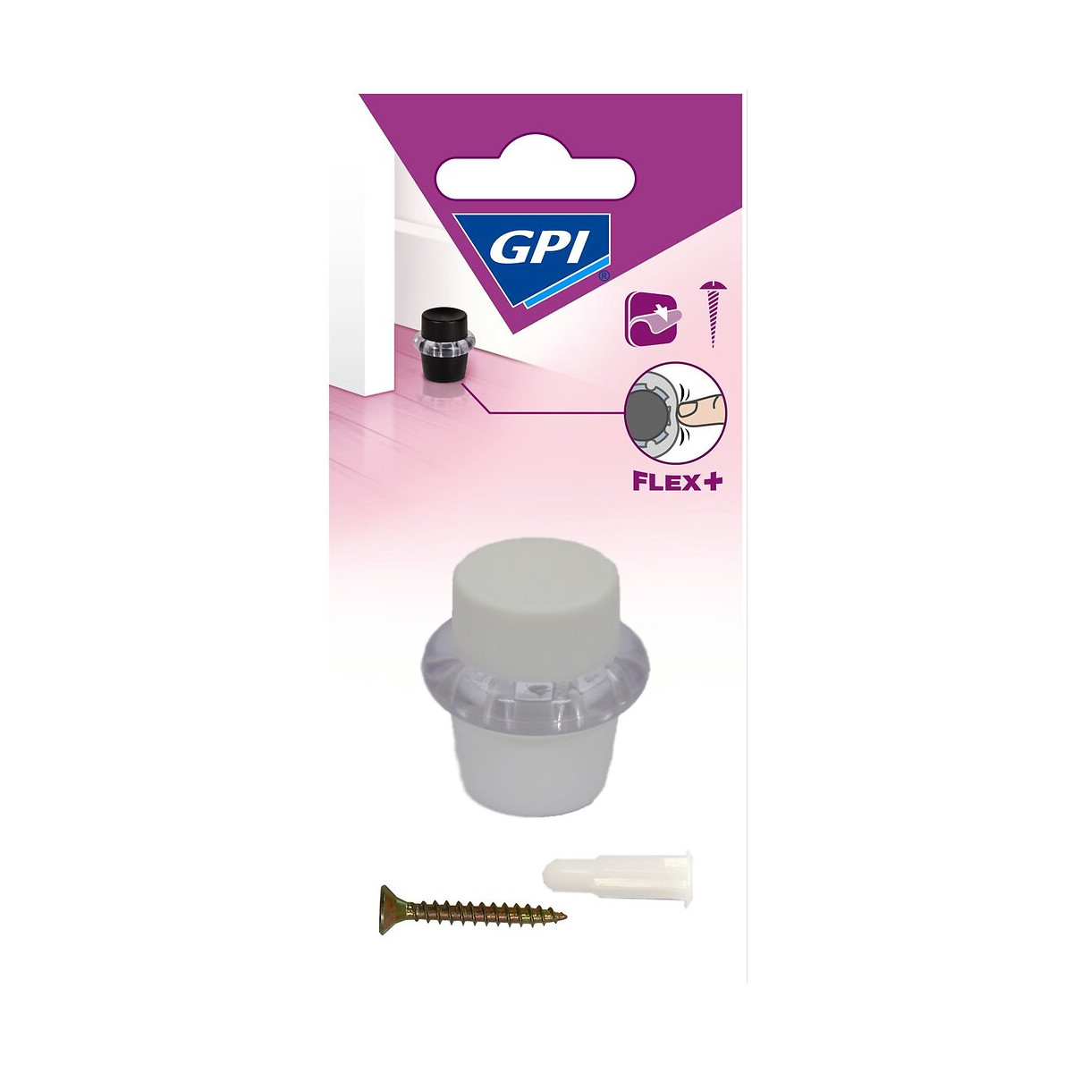 Butée plastique avec anneau amortisseur pour protéger le mur et la poignée fixation au sol adhésif ou à visser.Spécifications techniques