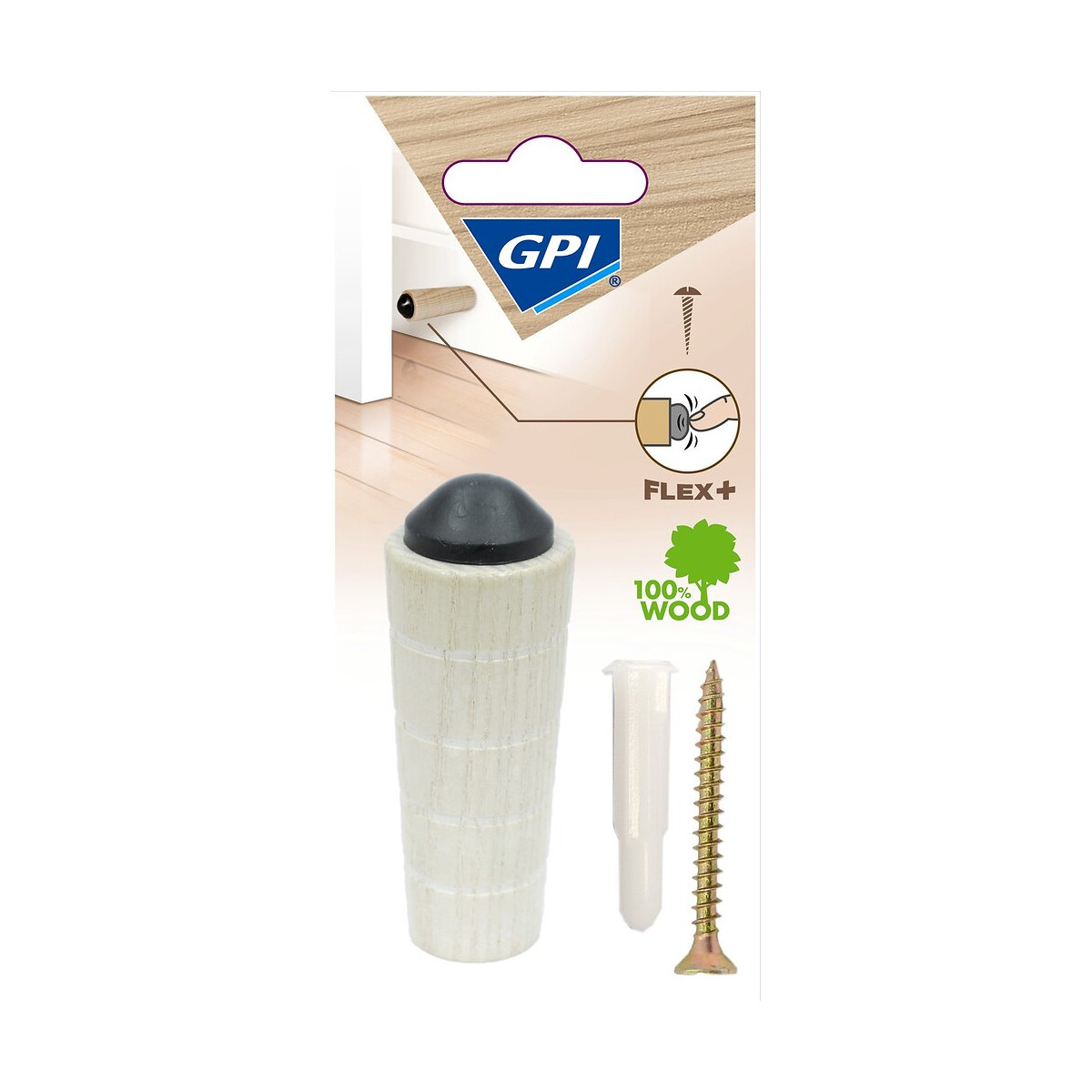 Butée bois frêne avec embout amortisseur. Pour protéger le mur et la poignée - Fixation au mur à visser.Spécifications techniques