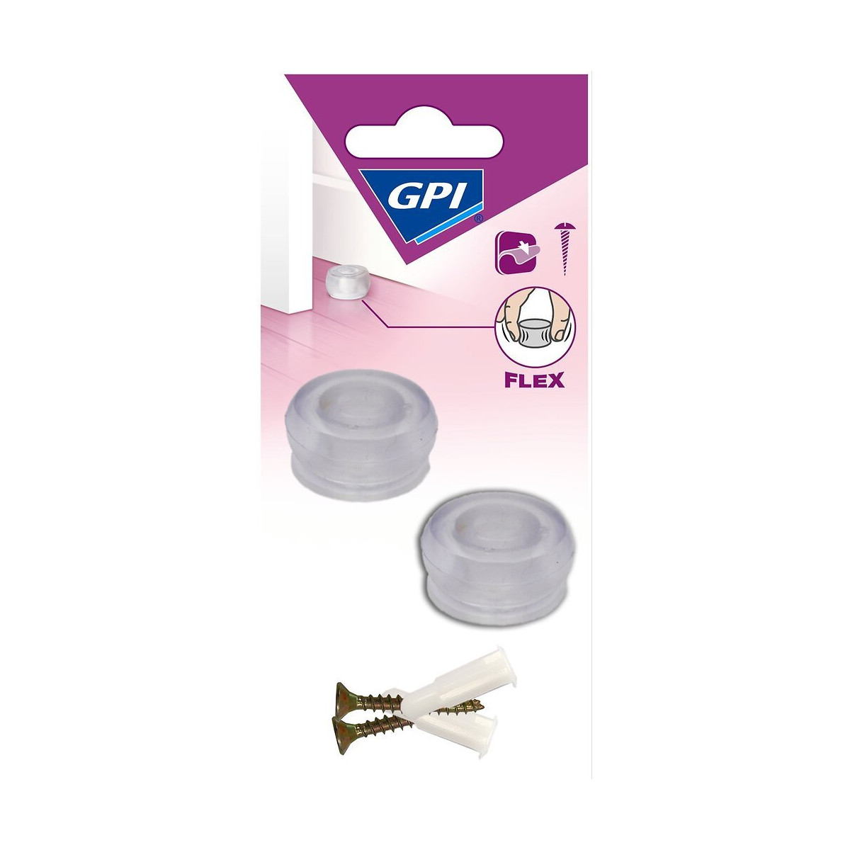 Butée plastique souple - Pour protéger le mur et la poignée - Fixation au sol à visser.Spécifications techniques