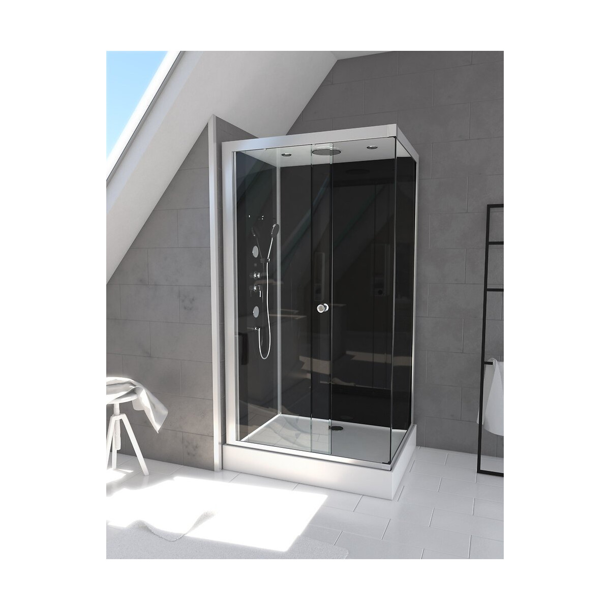 Caractéristiques techniques 110X80X215cm Hauteur nécessaire pour installation 230cm Structure en aluminium laqué gris argent Porte coulissante en verre trempé 5mm réversible Fond en verre 2 parties trempé noir Colonne en verre trempé noir Paroi de côté en verre trempé Toit en verre trempé blanc Receveur en acrylique blanc renforcé Fermeture magnétique Montage sans silicone Attestation de conformité sanitaire Équipement Douche de tête pluie ronde et chromée Système d'hydromassage à 2 buses chromées grand format Douchette à main anti-calcaire avec flexible inox double agraphage Tablette en verre Poignée chromée Mitigeur mécanique Bonde grand débit 90mm Référence: CAB174 PLUS PRODUIT: Toute en transparence, expérimentez la cabine de douche RAVEN dans votre salle de bain. Equipée d'un fond noir en verre trempé, appréciez le confort d'une douche de tête pluie ronde et chromée, d'un système d'hydromassage à 2 buses ainsi qu'une douchette à main anticalcaire. Le petit plus très pratique : la tablette en verre. Garantie 2 ans pièces et non main d'oeuvre. Profilé noir mat thermolaqué : Le thermolaquage est une technique de traitement spécifique réservé aux matériaux en métal ou en aluminium brut. On projette de la peinture en poudre chargée en électricité statique qui va se déposer sur toute la surface des profilés. Cette technique de pulvérisation en poudre , qui s’appelle projection électrostatique ou poudrage électrostatique, permet d'avoir un revêtement complètement uniforme sur tous les profilés. Ce type de traitement dispense l’utilisation de produits chimiques nocifs pour la santé et l’environnement comme les solvants. Après avoir été recouverte de poudre, la pièce doit passer dans un four où elle sera chauffée pendant 20 minutes à 200°C. Les avantages du thermolaquage : Cette technique possède de nombreux avantage, qui sont La surface peinte possède une dureté supérieure ce qui a pour conséquence une résistance aux chocs accrue Le thermolaquage a une meilleure résistance à la corrosion La couleur des profilés thermolaqués résiste mieux au vieillisement et tout autres élément tel que l'humidité etc. Les profilés thermolaqués présentent une meilleure finition, fini les coulures de peinture et défauts d'aspect, avec cette technique la surface est uniforme Sans solvant c'est un véritable plus pour la santé Mais aussi plus écologique (pas de solvants) Dans un souci de qualité mais aussi de sécurité nos produits répondent à toutes les normes Européennes en vigeur. Que ce soit en terme de sécurité en cas de casse, d'entretien de nos produits ou de la durée de vie de ces derniers, nos produits remplissent tous les critères. Verre trempé : Le verre trempé est un verre qui a subi un traitement afin d’améliorer ses propriétés. Nous utilisons la trempe thermique qui consiste à porter le verre à très haute température (environ à 700 °C), puis de le refroidir rapidement. Ce processus favorise l'apparition de tensions en profondeur et celle de la compression à la surface du verre. Tout cela a pour effet l’amélioration de sa résistance aux chocs. Il est de 2 à 5 fois plus résistant que le verre simple. Mais aussi diminue grandement la dangerosité du verre car en cas de casse le verre explose en de petits morceaux et non pas en de grands pans tranchants. Pour le reste il conserve les mêmes propriétés que le verre classique Norme harmonisée : EN14428:2004 Certification Européenne: Aptitude au nettoyage : EN14428 :2004+A1:2008 Clause 4.2 Résistance à l’impact / Propriétés d’éclatement: EN14428:2004+A1:2008 Clause 4.3 Durabilité : EN14428:2004+A1:2008 Clause 4.4 MyShowerRoom c’est aussi la garantie de durabilité : Nous garantissons un stocks de pièces détachées d’au moins 5 ans Notre visserie est en acier inoxydable ce qui est une garantie anticorrosion Garantie 2 ans pièces uniquement Cocorico ! MyShowerRoom est une entreprise Française et toute la conception de nos produits est également Française. Ce qui est un véritable plus pour être au plus près de ses clients et avoir une meilleure connaissance de leurs attentes. Qui sommes nous L’HISTOIRE DE MYSHOWERROOM Nous avons créé MyShowerRoom en 2003 avec l’ambition de démocratiser le design et l’innovation dans la salle de bain pour faire de cette pièce un lieu à part entière, un véritable lieu d’histoires à vivre pour toute la famille. Nos cabines de douche et meubles de salle de bain dans l’ère du temps à des tarifs très accessibles. Nos nombreux brevets garantissent l’originalité de notre gamme de cabines de douches. Et nos ingénieurs mettent en œuvre tout leur savoir-faire et toutes les technologies innovantes au service d’une simplicité d’installation et d’utilisation incomparable pour tous. ÊTRE BIENVEILLANT AVEC NOS CLIENTS Notre service client a un objectif : rendre nos clients heureux. Pour cela nous veillons à répondre dans les 24h aux demandes clients. Mais aussi de toujours apporter une solution et entière satisfaction à nos clients. CONSTRUIRE DES PRODUITS TOUJOURS PLUS PERFORMANTS Nos ingénieurs, ainsi que nos équipes terrain consacrent tous leurs efforts à créer des produits adaptés à vos besoins, et toujours plus innovants grâce à nos technologies. Notre objectif est d’être votre unique interlocuteur pour tous vos projets de salle de bain. CONCRÉTISER LES RÊVES DE CHACUN Un projet de salle de bain ? Nous le réalisons ! Lieu de détente et de relaxation par excellence, la salle de bain est une des pièces maîtresse de la maison. Chez MyShowerRoom, nous mettons tout en oeuvre afin que ce rêve devienne réalité. PROPOSER UNE GAMME COMPLÈTE DE PRODUITS Nous vous proposons grâce à notre boutique en ligne une gamme complète de produits Made in MyShowerRoom pour équiper, et accessoiriser votre salle de bain. Un catalogue que nous renouvelons