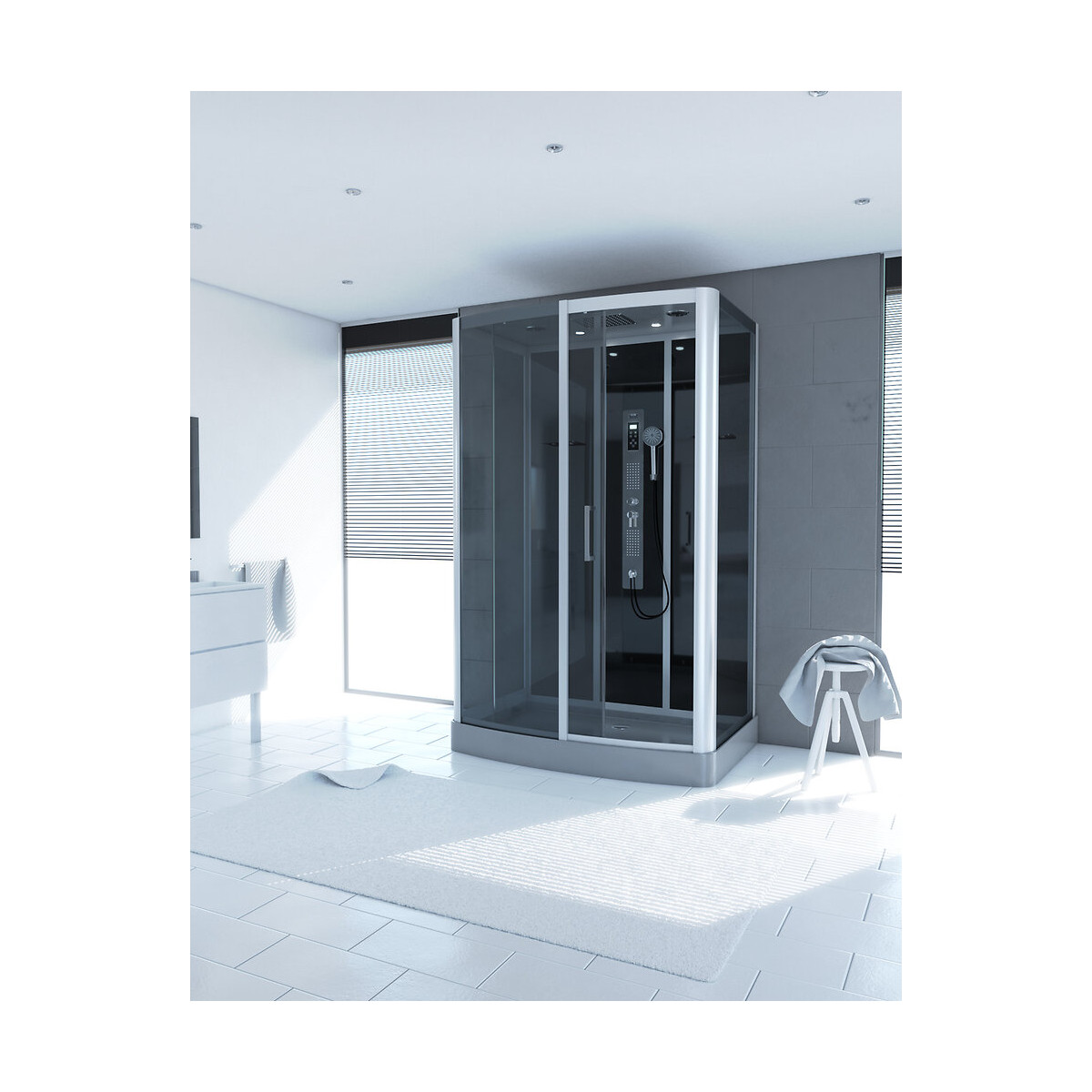 Caractéristiques techniques 85X140X215cm Hauteur nécessaire pour installation 230cm Structure en aluminium laqué gris métal Porte coulissante réversible en verre trempé fumé 6 mm Fond en verre trempé 5 mm noir Toit et receveur en acrylique gris renforcé Fermeture magnétique Montage sans silicone Attestation de conformité sanitaire Équipement Rideau de pluie inox Panneau d’hydromassage inox multi jets anti-calcaire Douchette à main anti-calcaire et flexible PVC noir Panneau de contrôle tactile/ Radio FM / Bluetooth Tablette en verre fumé Spot à LED Extracteur de vapeur Poignée en inox chromée Mitigeur mécanique Bonde grand débit 90 mm Livré avec flexibles de raccordement Référence: CAB170 PLUS PRODUIT: La structure de la cabine PRIMUS XXL est en aluminium et également teinté en gris métal. L'aluminium allège l'ensemble, tout en assurant solidité et longévité. Pour la douche, vous trouverez dans cette cabine un rideau de douche, des buses multijets, une douchette, une tablette en verre fumé...Et pour une expérience complète, la cabine PRIMUS est également équipée d'un extracteur de vapeur et d'un panneau de controle tactile avec radio FM et bluetooth. Garantie 2 ans pièces et non main d'oeuvre. Profilé noir mat thermolaqué : Le thermolaquage est une technique de traitement spécifique réservé aux matériaux en métal ou en aluminium brut. On projette de la peinture en poudre chargée en électricité statique qui va se déposer sur toute la surface des profilés. Cette technique de pulvérisation en poudre , qui s’appelle projection électrostatique ou poudrage électrostatique, permet d'avoir un revêtement complètement uniforme sur tous les profilés. Ce type de traitement dispense l’utilisation de produits chimiques nocifs pour la santé et l’environnement comme les solvants. Après avoir été recouverte de poudre, la pièce doit passer dans un four où elle sera chauffée pendant 20 minutes à 200°C. Les avantages du thermolaquage : Cette technique possède de nombreux avantage, qui sont La surface peinte possède une dureté supérieure ce qui a pour conséquence une résistance aux chocs accrue Le thermolaquage a une meilleure résistance à la corrosion La couleur des profilés thermolaqués résiste mieux au vieillisement et tout autres élément tel que l'humidité etc. Les profilés thermolaqués présentent une meilleure finition, fini les coulures de peinture et défauts d'aspect, avec cette technique la surface est uniforme Sans solvant c'est un véritable plus pour la santé Mais aussi plus écologique (pas de solvants) Dans un souci de qualité mais aussi de sécurité nos produits répondent à toutes les normes Européennes en vigeur. Que ce soit en terme de sécurité en cas de casse, d'entretien de nos produits ou de la durée de vie de ces derniers, nos produits remplissent tous les critères. Verre trempé : Le verre trempé est un verre qui a subi un traitement afin d’améliorer ses propriétés. Nous utilisons la trempe thermique qui consiste à porter le verre à très haute température (environ à 700 °C), puis de le refroidir rapidement. Ce processus favorise l'apparition de tensions en profondeur et celle de la compression à la surface du verre. Tout cela a pour effet l’amélioration de sa résistance aux chocs. Il est de 2 à 5 fois plus résistant que le verre simple. Mais aussi diminue grandement la dangerosité du verre car en cas de casse le verre explose en de petits morceaux et non pas en de grands pans tranchants. Pour le reste il conserve les mêmes propriétés que le verre classique Norme harmonisée : EN14428:2004 Certification Européenne: Aptitude au nettoyage : EN14428 :2004+A1:2008 Clause 4.2 Résistance à l’impact / Propriétés d’éclatement: EN14428:2004+A1:2008 Clause 4.3 Durabilité : EN14428:2004+A1:2008 Clause 4.4 MyShowerRoom c’est aussi la garantie de durabilité : Nous garantissons un stocks de pièces détachées d’au moins 5 ans Notre visserie est en acier inoxydable ce qui est une garantie anticorrosion Garantie 2 ans pièces uniquement Cocorico ! MyShowerRoom est une entreprise Française et toute la conception de nos produits est également Française. Ce qui est un véritable plus pour être au plus près de ses clients et avoir une meilleure connaissance de leurs attentes. Qui sommes nous L’HISTOIRE DE MYSHOWERROOM Nous avons créé MyShowerRoom en 2003 avec l’ambition de démocratiser le design et l’innovation dans la salle de bain pour faire de cette pièce un lieu à part entière, un véritable lieu d’histoires à vivre pour toute la famille. Nos cabines de douche et meubles de salle de bain dans l’ère du temps à des tarifs très accessibles. Nos nombreux brevets garantissent l’originalité de notre gamme de cabines de douches. Et nos ingénieurs mettent en œuvre tout leur savoir-faire et toutes les technologies innovantes au service d’une simplicité d’installation et d’utilisation incomparable pour tous. ÊTRE BIENVEILLANT AVEC NOS CLIENTS Notre service client a un objectif : rendre nos clients heureux. Pour cela nous veillons à répondre dans les 24h aux demandes clients. Mais aussi de toujours apporter une solution et entière satisfaction à nos clients. CONSTRUIRE DES PRODUITS TOUJOURS PLUS PERFORMANTS Nos ingénieurs, ainsi que nos équipes terrain consacrent tous leurs efforts à créer des produits adaptés à vos besoins, et toujours plus innovants grâce à nos technologies. Notre objectif est d’être votre unique interlocuteur pour tous vos projets de salle de bain. CONCRÉTISER LES RÊVES DE CHACUN Un projet de salle de bain ? Nous le réalisons ! Lieu de détente et de relaxation par excellence, la salle de bain est une des pièces maîtresse de la maison. Chez MyShowerRoom, nous mettons tout en oeuvre afin que ce rêve devienne réalité. PROPOSER UNE GAMME COMPLÈTE DE PRODUITS Nous vous proposons grâce à notre boutiqu