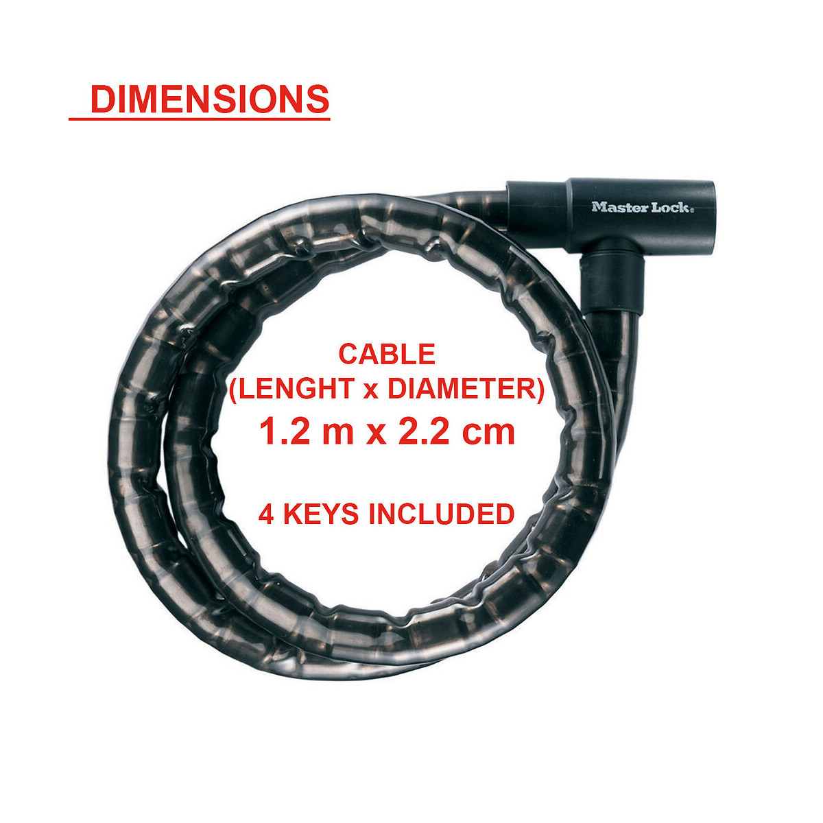 Le câble antivol à clé Master Lock nº 8115EURDPS d'une longueur de 1,2 m présente une conception en acier articulé d'un diamètre de 22 mm pour une résistance et une flexibilité maximales. Le revêtement de protection en vinyle permet d'éviter les rayures. Le cylindre à disque avec clé assure une protection contre le crochetage. Le câble antivol est idéal pour sécuriser les deux roues : motos, scooters et vélos. La garantie à vie limitée vous garantit une tranquillité d'esprit grâce à une marque sur laquelle vous pouvez compter. APPLICATION DU CADENAS : usage intérieur ou extérieur , le câble antivol à clé est idéal pour sécuriser tous les deux roues (moto, scooter et vélo) DESIGN SECURISE : câble en acier articulé pour assurer souplesse et résistance , mécanisme de verrouillage à clé du cylindre à disque anti-crochetage intégré pour une sécurité optimale CARACTÉRISTIQUES : Câble (LongueurxDiamètre) 1,2 mx2,2 cm , 4 clés DESIGN DURABLE : revêtement de protection en vinyle pour éviter les rayures.