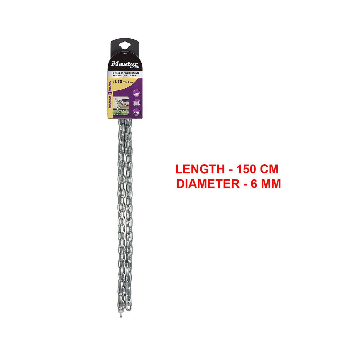 La chaîne Master Lock nº 8012EURD mesure 1,5m de long avec des maillons en acier cémenté de 6 mm de diamètre, offrant ainsi une résistance maximale à la coupe et au sciage. La conception de maillon en acier soudé offre une résistance supérieure au crochetage. La gaine en vinyle offre une protection contre les éraflures. La chaîne est idéale pour sécuriser une clôture, un portail, de l'outillage, du mobilier de jardin, un vélo ou autres 2 roues. La garantie à vie limitée vous garantit une tranquillité d'esprit grâce à une marque sur laquelle vous pouvez compter. UTILISATIONS MULTIPLES : pour une utilisation en intérieur ou en extérieur , idéal pour sécuriser clôtures, portails, outillage, mobilier de jardin, vélo et autres 2 roues HAUTE SÉCURITÉ : Chaîne en acier cémenté , maillons carrés de 6 mm de diamètre pour une meilleure résistance à la coupe DIMENSIONS DE LA CHAÎNE : (LongueurxDiamètre) 1,5 mx0,6 cm DESIGN DURABLE : couverture vinyle thermoformée pour éviter les rayures.