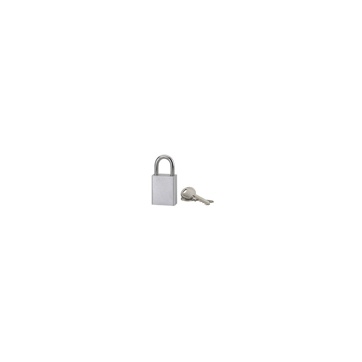 Cadenas 28 mm. Corps en aluminium massif anodisé. Anse inox. Double verrouillage par Billes inox. Mécanisme à goupilles. Bloc de sûreté interchangeable avec protection contre le perçage. 2 clés acier nickelé. Finition : Aluminium anodisé. Couleurs assorties. Utilisation : Extérieur.