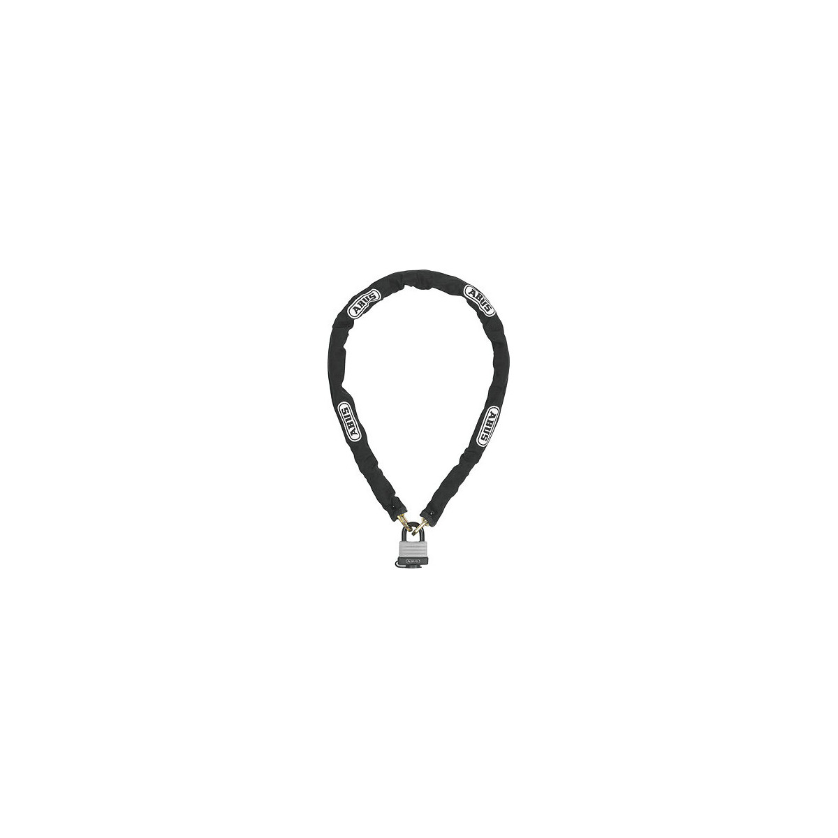 Ensemble chaine + cadenas. Chaine en acier cémenté avec un maillon plus long pour un verrouillage facile avec un cadenas. Chaine recouverte d'une gaine tissu de haute qualité. Longueur 90 cm. Cadenas avec un boitier solide en aluminium - Pièces intérieures en matériaux non corrosifs.