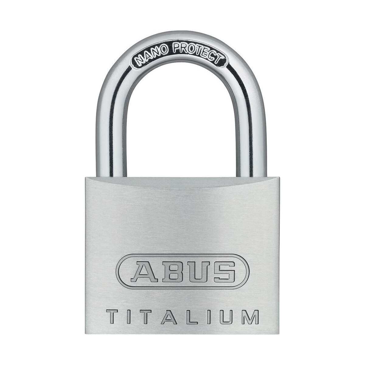 Cadenas à clés ABUS en Titalium 40 mm. Taille : 40 mm. Boîtier massif en aluminium spécial TITALIUM. Anse en acier avec protection anti corrosion. 2 clés réversibles brevetées.
