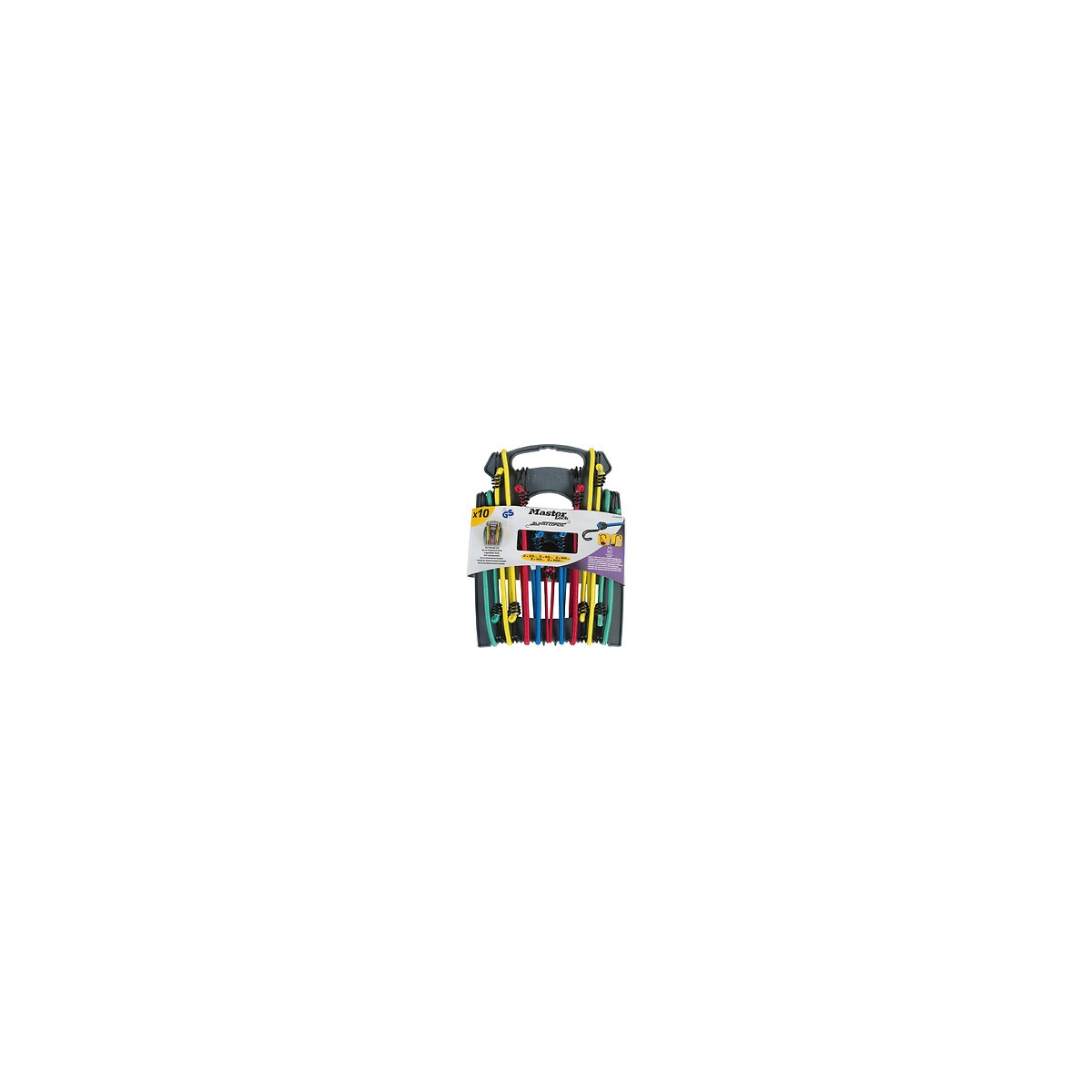 L'assortiment de tendeurs Master Lock n° 3043EURDAT comprend 10 tendeurs avec crochets double fil pour une résistance supérieure. Le design avec des crochets inversés sur le tendeur permet d'avoir un espace d'accrochage plus large. Le bout des crochets est arrondi pour prévenir les risques de rayures. Un cadre avec poignée intégrée est inclus pour un stockage, une organisation et un transport pratiques. Les tendeurs peuvent sécuriser des charges jusqu'à 40 kg, ils sont étirables de 25 cm à 37 cm, de 45 cm à 80 cm, de 60 cm à 90 cm, de 80 cm à 120 cm, de 100 cm à 150 cm. Les tendeurs permettent de sécuriser et d'attacher des charges pendant le transport (vélo, voiture, déménagement) ou en camping. Les tendeurs Master Lock sont certifiés GS Mark : garantie de sécurité et de confiance. APPLICATION DES TENDEURS : pack de 10 tendeurs de 25 cm, 45 cm, 60 cm, 80 cm et 100 cm pour sécuriser et attacher des charges jusqu'à 40 kg - vélo, déménagement, camping GS MARK - CERTIFICATION : qualité et sécurité certifié des tendeurs Master Lock QUALITÉ PREMIUM : corde de 0,8 cm de diamètre , étirables de 25 cm à 37 cm, de 45 cm à 80 cm, de 60 cm à 90 cm, de 80 cm à 120 cm, de 100 cm à 150 cm , crochet double fil qui offre une résistance supérieure aux tendeurs traditionnels DESIGN DU CROCHET : le crochet inversé permet d'avoir un espace d'accrochage plus large , bout arrondi pour prévenir des rayures.