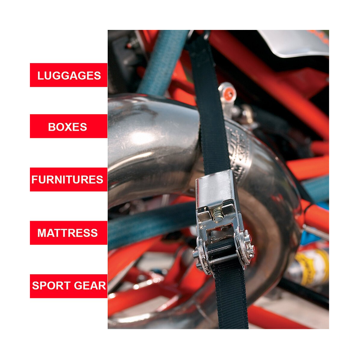 Le modèle Fast Link n° 4365EURDAT comprend une sangle à cliquet de 5 mx25 mm. Le cliquet a une capacité d'arrimage de 150 kg. La sangle permet de sécuriser et d'attacher cartons, matelas, meubles, matériel sportif et autres pendant le transport. Idéal pour les déménagements et une utilisation privée ou professionnelle. SANGLE D'ARRIMAGE UNIVERSELLE : sangle à cliquet idéale pour sécuriser meubles, matelas, cartons, matériel sportif, moto pendant le transport SIMPLE D'UTLISATION : sangle avec cliquet pour ajuster parfaitement la longueur et maintenir fermement le chargement CARACTÉRISTIQUES (LongueurxLargeur) : 5 mx2,5 cm GRANDE CAPACITÉ DE CHARGE : permet de sécuriser des charges jusqu'à 150 kg.