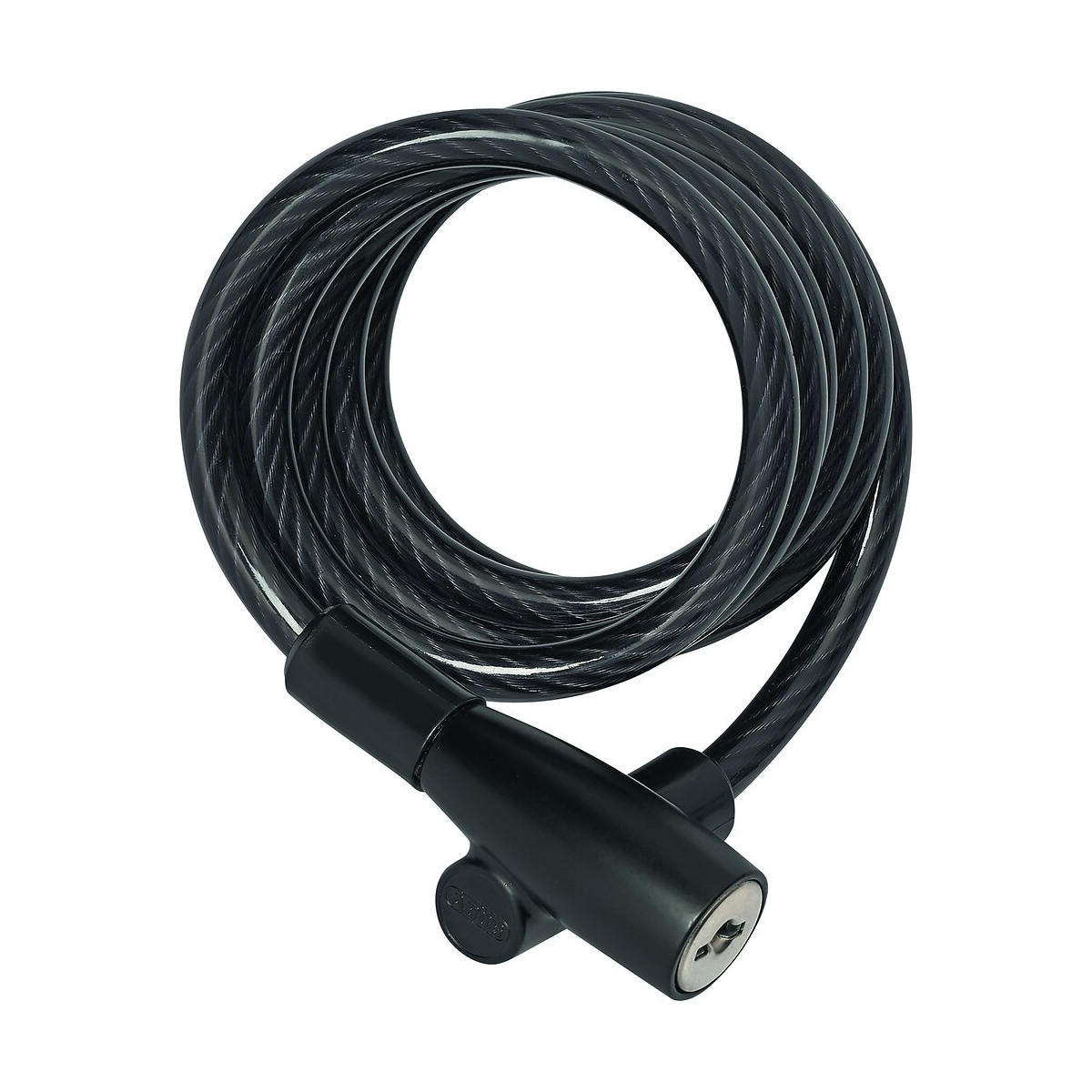 Câble Spiral Antivol CC LOCK 2105. Longueur : 180 cm. Diamètre : 7,5 mm. Couleur : noir. Revêtement synthétique pour éviter d'abîmer la peinture du vélo. Cylindre ABUS automatique équipé d'une protection antiperçage et d'une clé réversible facile à utiliser. Livré avec 2 clés.