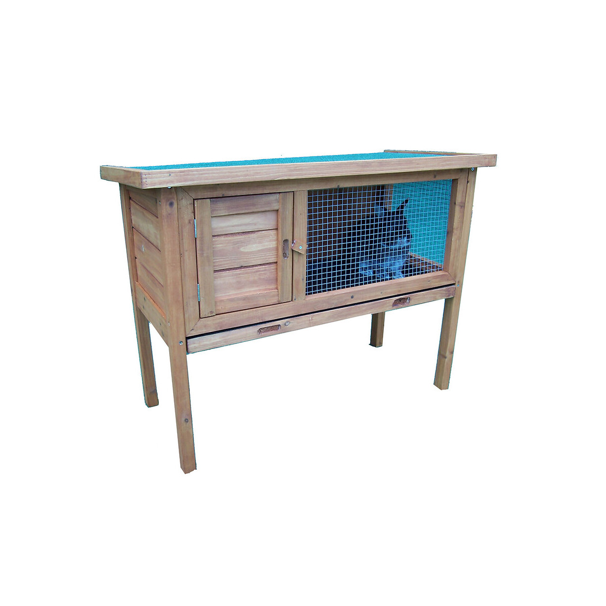 Clapier sur pied 1 niveau pour lapins et rongeurs avec un espace ouvert et un espace fermé, livré avec un tiroir à déjections Dimensions au sol : 84 x 37 cm Dimensions hors tout : 91,5 x 45 x 70 cm Livré bois teinté clair et toit bitumé Garantie : 2 ans Labellisé FSC A monter soi-mêmeSpécifications techniques