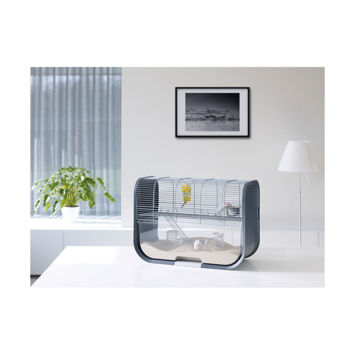 Cage Lugano pour gerbilles. pour rongeurs. dimension: longueur 60 cm , largeur 29 cm, hauteur 44 cm. La cage Lugano est une maison de gerbille de deux étages. Son design moderne et son concept unique conviendront à n'importe quel intérieur de maison, tandis que le réservoir en plastique transparent vous permet de voir vos animaux s'amuser dans un environnement conçu pour stimuler les conditions naturelles. La grande aire de jeu permet à vos gerbilles de compagnie de se cacher, de s'enfouir et de grimper à leur guise. Livré avec les accessoires suivants: 1 bol d'alimentation en acier inoxydable, 1 plancher métallique + escalier, 1 bouteille biberon biba 150 ml avec porte-gobelet, 1 jeu de tubes avec tube. Cage Lugano pour gerbilles. pour rongeurs. longueur 60 cm , largeur 29 cm, hauteur 44 cm. La cage Lugano est une maison de gerbille de deux étages. Son design moderne et son concept unique conviendront à n'importe quel intérieur de maison, tandis que le réservoir en plastique transparent vous permet de voir vos animaux s'amuser dans un environnement conçu pour stimuler les conditions naturelles. La grande aire de jeu permet à vos gerbilles de compagnie de se cacher, de s'enfouir et de grimper à leur guise. Le Lugano est facile à installer et à nettoyer. Non seulement la cage est équipée d'une grande porte avant pour un accès facile, mais à des fins de nettoyage, la partie supérieure de la cage peut être fermée du réservoir en plastique. Livré avec des accessoires. Maison de gerbille de deux étages. Réservoir en plastique transparent pour une visibilité parfaite. Design moderne, concept unique. Convient à tous les intérieurs. Facile à installer et nettoyer. La partie supérieure de la cage peut être fermée du réservoir en plastique. Grande porte d'entrée, accès facile. Une grande aire de jeux permet de se cacher, de creuser et de grimper. Stimule le comportement naturel de votre animal. Equipé d'accessoires. poids de la cage emballé dans le carton d'origine 5 kg. Photo non contractuelle, car il y a plusieurs vendeurs sur une même fiche produit.
