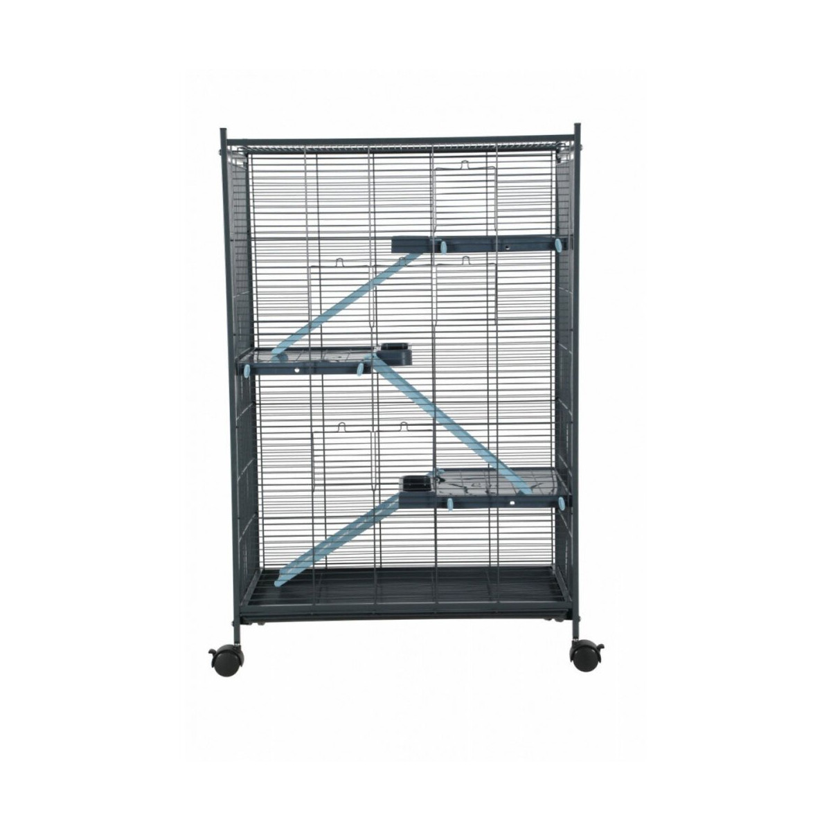 Indoor 2 Maxi loft couleur bleu. pour rat, souris, furet, chinchilla. La nouvelle gamme d'habitats adaptée à tous les petits mammifères et à tous les intérieurs ! Toutes les cages sont équipées d'accessoires aux couleurs pastel, bleu ou rose <>, et d'une peinture gris mat tendance. Dimension intérieur: longueur 67.5 cm largeur 39 cm hauteur 92.5 cm. dimension extérieur 72 x 43 x hauteur 107 cm . barreau de ø 1.5 mm . espace entre barreaux 11 mm. équipements 3 écuelles intégrées et 3 rampes d'accès. Bac amovible pour faciliter l'entretien. équipée de roulettes avec frein., facile à déplacer. multiples ouvertures. poids de la cage 11.90 kg Indoor 2 Maxi loft couleur bleu. pour rat, souris, furet, chinchilla. La nouvelle gamme d'habitats adaptée à tous les petits mammifères et à tous les intérieurs ! Toutes les cages sont équipées d'accessoires aux couleurs pastel, bleu ou rose <>, et d'une peinture gris mat tendance. Dimension: intérieur. longueur 67.5 cm largeur 39 cm hauteur 92.5 cm. ii barreau de ø 1.5 mm . espace entre barreaux 11 mm. équipements 3 écuelles intégrées et 3 rampes d'accès. Bac amovible pour faciliter l'entretien. équipée de roulettes avec frein., facile à déplacer. multiples ouvertures. poids de la cage 11.90 kg Photo non contractuelle, car il y a plusieurs vendeurs sur une même fiche produit.