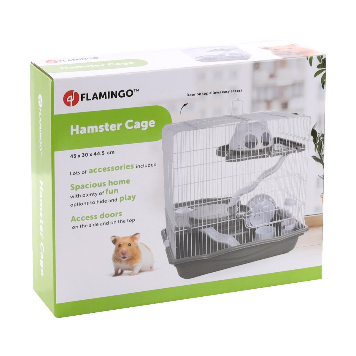 Cage Binky grise. pour Hamster. Cette jolie cage pour hamster équipée d'accessoires comprend plusieurs niveaux et offre à votre hamster un vaste espace pour se déplacer. A l'intérieure de la cage, votre petit animal peut profiter de multiples possibilités de cachette et de jeu. Le haut de la cage peut être ouvert d'un côté, ce qui vous permet de sortir votre hamster très facilement. 1 porte avant. 2 plateformes. 2 rampes. Gourde avec support (capacité : 125 ml). 1 écuelle à manger. 1 abri pour dormir (peut être fixé sur la plateforme supérieure). 1 roue. dimension: longueur 45 x profondeur 30 x hauteur 44.5 cm. Auto assemblage. vidéo 360 ° Cage Binky grise. pour Hamster. Cette jolie cage pour hamster équipée d'accessoires comprend plusieurs niveaux et offre à votre hamster un vaste espace pour se déplacer. A l'intérieure de la cage, votre petit animal peut profiter de multiples possibilités de cachette et de jeu. Le haut de la cage peut être ouvert d'un côté, ce qui vous permet de sortir votre hamster très facilement. 1 porte avant. 2 plateformes. 2 rampes. Gourde avec support (capacité : 125 ml). 1 écuelle à manger. 1 abri pour dormir (peut être fixé sur la plateforme supérieure). 1 roue. dimension: longueur 45 x profondeur 30 x hauteur 44.5 cm. Matériau : plastique et en métal. 2 ouvertures : porte à l'avant et grande ouverture en haut. Avec 2 plateformes et 2 rampes. Comprend un biberon avec support, une gamelle pour la nourriture, une roue d'exercice et une cachette. La cachette peut être fixée sur la plateforme supérieure. Auto assemblage. VIDÉO 360 ° Photo non contractuelle, car il y a plusieurs vendeurs sur une même fiche produit.