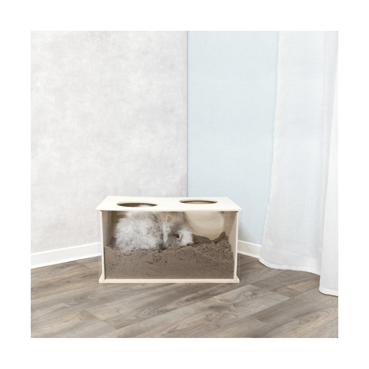 Boite à fouiner. en bois, répond à l'instinct naturel de fouiner des lapins. pratique pour l'animal grâce aux deux entrées / sorties, avec panneau acrylique pour observer les animaux. le couvercle empêche le sable de sortir, pour un usage intérieur. facile à monter grâce au système d'assemblage. Dimensions: 58 × 30 × 38 cm, Hauteur: 30 cm . Boite à fouiner en bois, répond à l'instinct naturel de fouiner des lapins pratique pour l'animal grâce aux deux entrées / sorties, avec panneau acrylique pour observer les animaux le couvercle empêche le sable de sortir, pour un usage intérieur facile à monter grâce au système d'assemblage Dimensions: 58 × 30 × 38 cm, Hauteur: 30 cm . Photo non contractuelle, car il y a plusieurs vendeurs sur une même fiche produit.