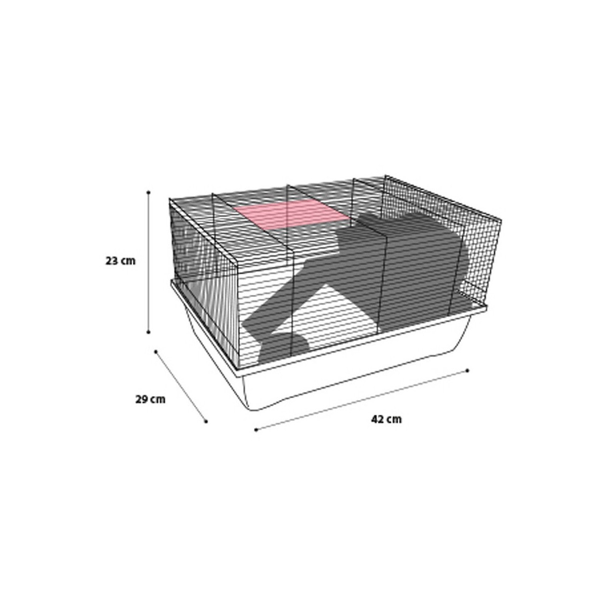 Cage pour souris Tito dimension: 42 x 29 x 23 cm inclus dans la cage une rampe une maisonnette, une roue d'exercice, et une mangeoire. Cage pour souris Tito dimension: 42 x 29 x 23 cm inclus dans la cage une rampe une maisonnette, une roue d'exercice, et une mangeoire. Photo non contractuelle, car il y a plusieurs vendeurs sur une même fiche produit.