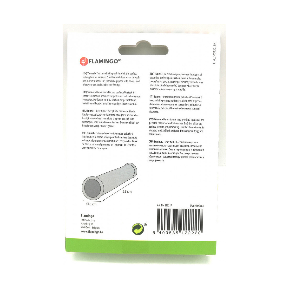 Tunnel pour hamster. CLAVIO .ø 6 cm x 25 cm. pour rongeurs Tunnel pour hamster. gamme CLAVIO dimension 6 cm x 25 cm. revêtement intérieur en tissu gris très doux. tissu légèrement crissant pour rongeurs Photo non contractuelle, car il y a plusieurs vendeurs sur une même fiche produit.