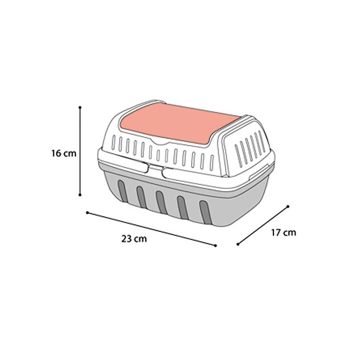Cage de transport Lizzie taille S couleur rose et blanc dimension: 17 x 23 x 16 cm ouverture par le haut passage 17 cm x 12 de large de long . 2 poignées. pour petits rongeurs. Cage de transport Lizzie taille S couleur rose et blanc dimension: 17 x 23 x 16 cm ouverture par le haut passage 17 cm x 12 de large de long . 2 poignées. pour petits rongeurs. Photo non contractuelle, car il y a plusieurs vendeurs sur une même fiche produit.