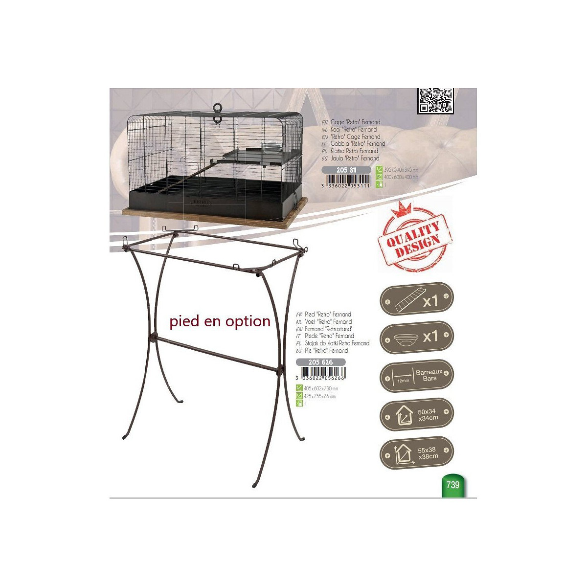 Cage rétro Fernand. pour petit rongeur. dimension intérieur largeur 35 x profondeur 35 x hauteur 55 cm . Dimensions extérieures : Largeur 39,5 x profondeur 39,5 x hauteur 59 cm. Retro est une gamme de cages inspirée de l'histoire de Zolux, adaptée aux besoins de notre époque. Fabriquées en métal et fixées sur un plateau en bois, ces cages pour rongeurs adoptent un style vintage unique qui participera à la décoration de la maison. La cage Fernand est équipée de d'une plateforme en métal, d'une rampe d'accès en bois, d'un crochet de suspension en métal, de crochet en métal et d'un bol en verre. espace entre les barreaux 12 mm. avec 2 portes passage largeur 13 x hauteur 11 cm Cage fabriquée en Europe. Cage rétro Fernand. pour petit rongeur. Retro est une gamme de cages inspirée de l'histoire de Zolux, adaptée aux besoins de notre époque. Fabriquées en métal et fixées sur un plateau en bois, ces cages pour rongeurs adoptent un style vintage unique qui participera à la décoration de la maison. La cage Fernand est équipée de d'une plateforme en métal, d'une rampe d'accès en bois, d'un crochet de suspension en métal, de crochet en métal et d'un bol en verre. espace entre les barreaux 12 mm. avec 2 portes passage largeur 13 x hauteur 11 cm Cage fabriquée en Europe. Dimensions extérieures : L 39,5 x p 39,5 x h 59 cm. Dimensions intérieures : L 35 x p 35 x h 55 cm. Photo non contractuelle, car il y a plusieurs vendeurs sur une même fiche produit.