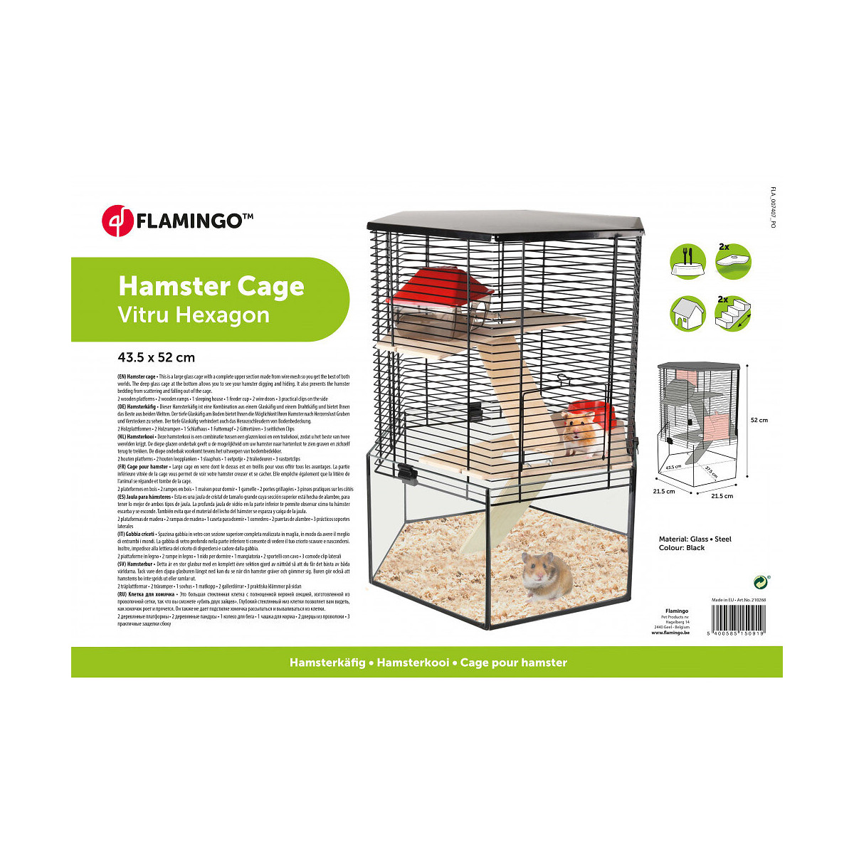 Cage pour hamster VITRU hexagone. dimension voir photo 3 pour toutes les cotes. 52 cm de hauteur. Large cage en verre dont le dessus est en treillis pour vous offrir tous les avantages. La partie inférieure vitrée de la cage vous permet de voir votre hamster creuser et se cacher. Elle empêche également que la litière de l'animal se répande et tombe de la cage. inclus 2 plateformes en bois - 2 rampes en bois - 1 maison pour dormir 1 gamelle • 2 portes grillagées • 3 pinces pratiques sur les côtés. Cage pour hamster VITRU hexagone. dimension voir photo 3 pour toutes les cotes. 52 cm de hauteur. Large cage en verre dont le dessus est en treillis pour vous offrir tous les avantages. La partie inférieure vitrée de la cage vous permet de voir votre hamster creuser et se cacher. Elle empêche également que la litière de l'animal se répande et tombe de la cage. inclus 2 plateformes en bois - 2 rampes en bois - 1 maison pour dormir 1 gamelle • 2 portes grillagées • 3 pinces pratiques sur les côtés. Photo non contractuelle, car il y a plusieurs vendeurs sur une même fiche produit.