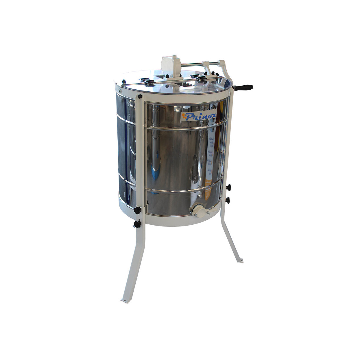 Rapport qualité / prix imbattable pour un extracteur fiable et robuste ! Conçue et fabriquée sous le cahier des charges Thomas Apiculture, la gamme étendue des extracteurs Prinox répond aux besoins de tous les apiculteurs amateurs, qu'ils soient débutants ou confirmés et ce à un prix imbattable ! Afin d'apporter un grand confort d'utilisation et d'améliorer leur longévité, toute la gamme de nos extracteurs Prinox (sauf réf. P116 et P118) est désormais proposée avec : - 3 pieds démontables en acier peint en '' U '' haute résistance, - 1 bord roulé, - 2 cerclages acier de renfort en haut et en bas de la cuve assurant une parfaite robustesse de l'ensemble, - 1 robinet à clapet en plastique alimentaire 40/49, - 2 couvercles en plexiglas, - Des engrenages en acier renforcé sous carter. L'extracteur ''RADIA'' permet d'extraire en mode radiaire et tangentiel (cage tangentielle en résine) à l'aide des 3 grilles tangentielles fournies. En radiaire : 9 cadres de hausse Dadant, 9 cadres de hausses Voirnot 13,5 cm. En tangentiel : 6 cadres de hausse ou 3 cadres de corps Dadant, 6 cadres de hausse Voirnot 13,5 cm, 3 cadres Langstroth et Warré. Il est recommandé pour les apiculteurs ayant entre 1 et 20 ruches. De conception très robuste, vous pouvez le ranger facilement à la fin de la saison grâce à ses trois pieds démontables. Si vous souhaitez étaler votre investissement dans le temps, il est possible de faire motoriser cet extracteur avec notre kit d'électrification (réf. P110). Facile d'entretien, il vous permettra d'extraire efficacement le miel après désoperculation de vos cadres. Cet extracteur a été conçu pour recevoir jusqu'à 3 paniers nylon sécheurs d'opercules ? référence 3406 qui vous permettront d'extraire par centrifugation le miel contenu dans les opercules. Astuces d'apiculteur : Pensez à avoir plusieurs seaux à bec verseur pour récupérer le miel en sortie d'extracteur et le transférer directement dans vos maturateurs ou tonnelets.