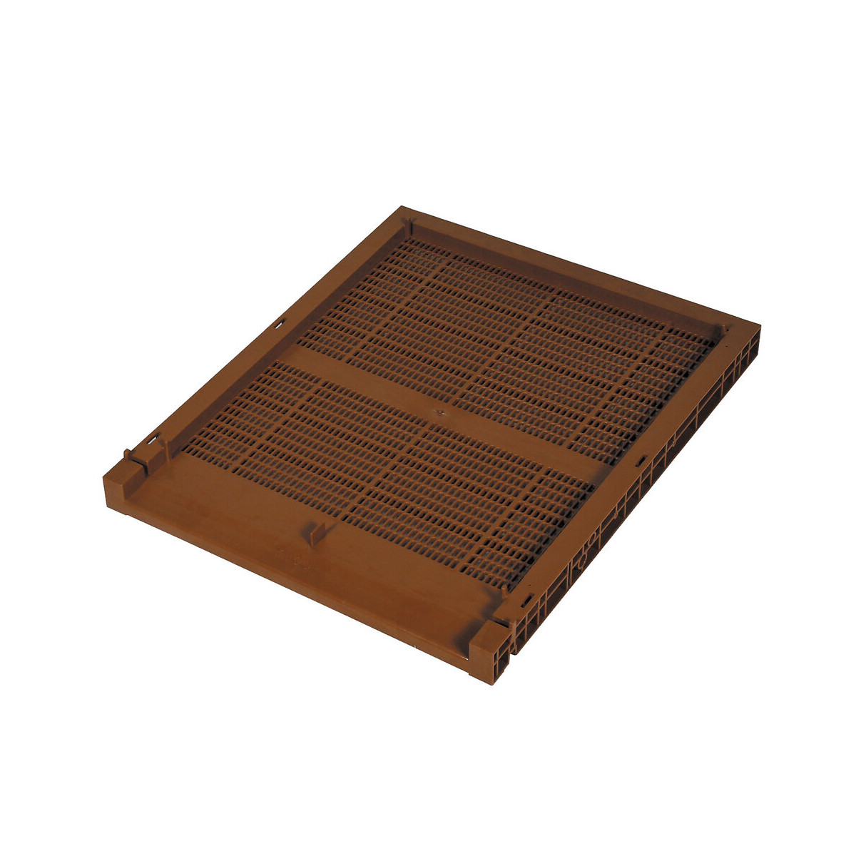 Plateau de fond injecté en une seule et unique pièce teintée dans la masse. Très résistant, son entretien est facile. Ce plateau de fond de ruche est fabriqué en France dans le Jura à partir de plastique alimentaire haute densité et recyclable. Ce produit apporte un vrai confort d'utilisation pour tous les apiculteurs de par ses principales propriétés fonctionnelles : Résistance et longévité grâce au processus de fabrication par injection et une teinture dans la masse, Légèreté naturelle du matériau, Facilité d'entretien de par ses parois très lisses et non poreuses. Il est conçu pour pouvoir recevoir tout type de ruches, bois ou plastique grâce à ses 4 doigts de centrage et ses 2 butées à l'avant. Pour éviter toute déformation de cet équipement, il est important de le stocker à plat et de le nettoyer au karcher. Au début du printemps, pour favoriser le développement du couvain de la colonie, il est conseillé, de fermer le fond version ventilation totale (la plaque d'hivernage peut être utilisée pour effectuer le comptage varroa).