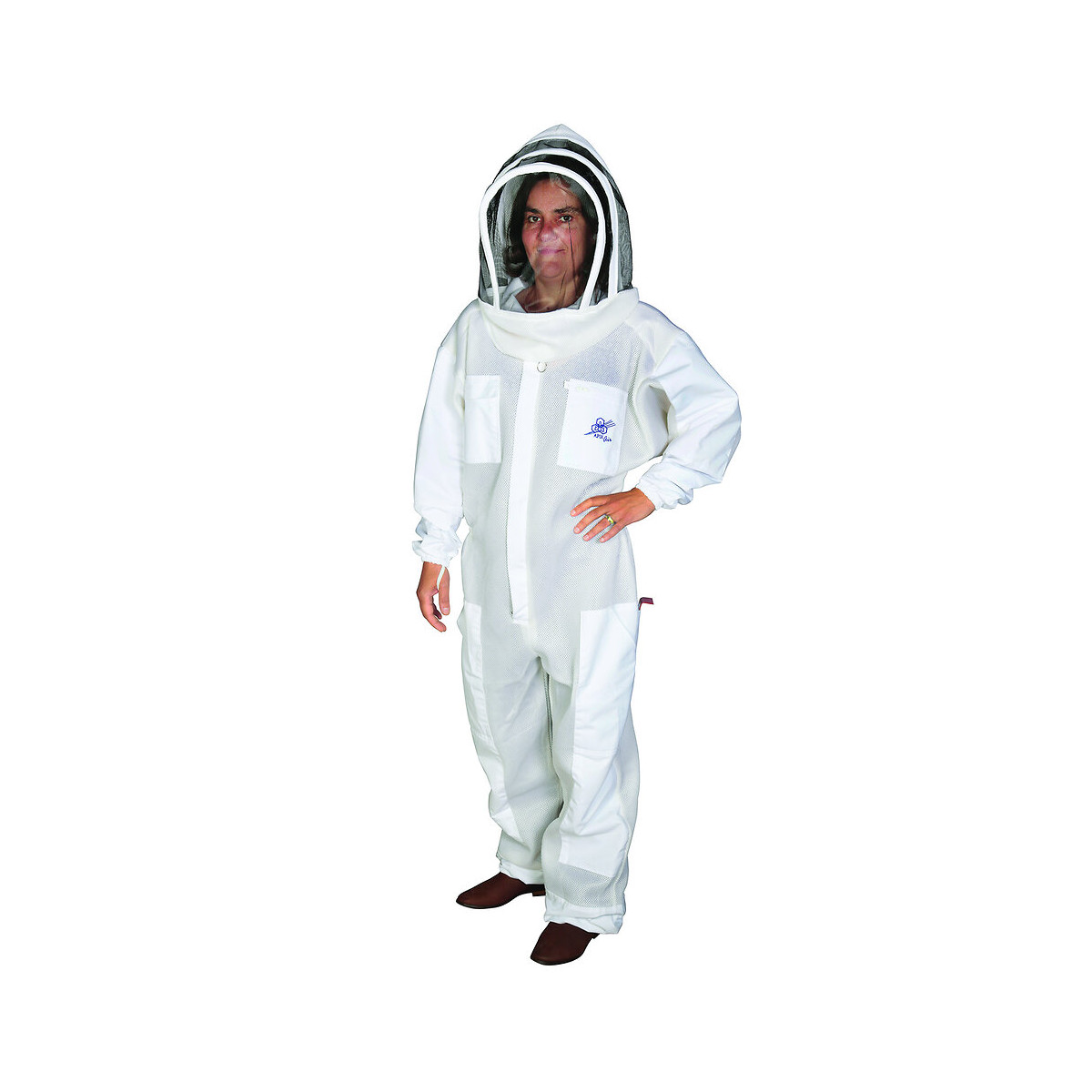 Apix-Air, une marque de référence. Grâce à la combinaison ''Apix-Air'', vous serez protégé(e) de la tête aux pieds pour vos visites au rucher. Elle est en mailles aérées 100% polyester et munie d'une cagoule triple armature entièrement détachable. Elle est composée de 2 poches poitrines, l'une avec fermeture éclair, l'autre avec un scratch, 2 poches sur les cuisses, 2 poches à outils sur l'arrière, d'élastiques passe-pouce et de fermetures éclair et élastiques aux chevilles. Les épaules, avant-bras et l'avant des jambes sont également en tissu plein pour renforcer la protection. Cette combinaison Apix-Air vous est proposée en différentes tailles : - Réf. B40S : taille S, - Réf. B40M : taille M, - Réf. B40L : taille L, - Réf. B40XL : taille XL, - Réf. B40XXL : taille XXL. Pour vous aider à choisir la bonne taille de combinaison, une notice est disponible dans l'onglet ''Notices'' Vêtement certifié par l'Institut Français du Textile et de l'Habillement (IFTH) selon les normes réglementaires de la directive 89/686/CEE. Astuces d'apiculteur : Privilégiez les vêtements amples de couleurs claires, blanches ou kaki, car les abeilles associent les couleurs sombres à des prédateurs ou des trous. Le voile, quant à lui, doit rester noir pour une meilleure visibilité.