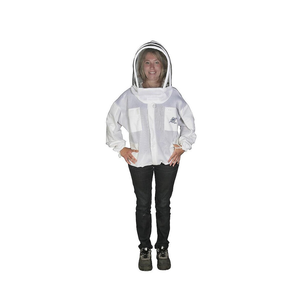 Le nouveau Blouson ''Apix-Air'' a été spécialement conçu pour protéger le haut de votre corps des piqûres d'abeilles. Il vous apportera une légèreté et ventilation exceptionnelle tout en vous protégeant parfaitement. Sa conception innovante et spécifique vous assure une protection parfaite contre les piqûres d'abeilles, et un confort de travail incomparable. Les élastiques au niveau de la taille et aux poignets rendent ce blouson complètement hermétique. Le blouson se ferme sur le devant par une fermeture à glissière avec rabat et auto-grippant. La cagoule triple armature type ''fer à cheval'', vous offre une meilleure visibilité et protège entièrement la tête grâce à un voile noir qui empêchera également le soleil de vous éblouir. Les 3 poches présentes sur le blouson permettent de transporter facilement les outils et autres ustensiles plus précieux dans la poche zippée. Ce blouson est doté d'élastiques à la taille et aux poignets ainsi qu'au pouce. Un renfort de tissus est prévu au niveau des épaules et avant-bras. Ce blouson est disponible en plusieurs tailles : - B30S : taille S, - B30M : taille M, - B30L : taille L, - B30XL : taille XL, - B30XXL : taille XXL. Vêtement certifié par l'Institut Français du Textile et de l'Habillement (IFTH) selon les normes réglementaires de la directive 89/686/CEE Pour vous aider à choisir la bonne taille de blouson, une notice est disponible dans l'onglet ''Notices'' Astuces d'apiculteur Privilégiez les vêtements amples de couleurs claires, blanches ou kaki, car les abeilles associent les couleurs sombres à des prédateurs ou des trous. Le voile, quant à lui doit rester noir pour une meilleure visibilité.