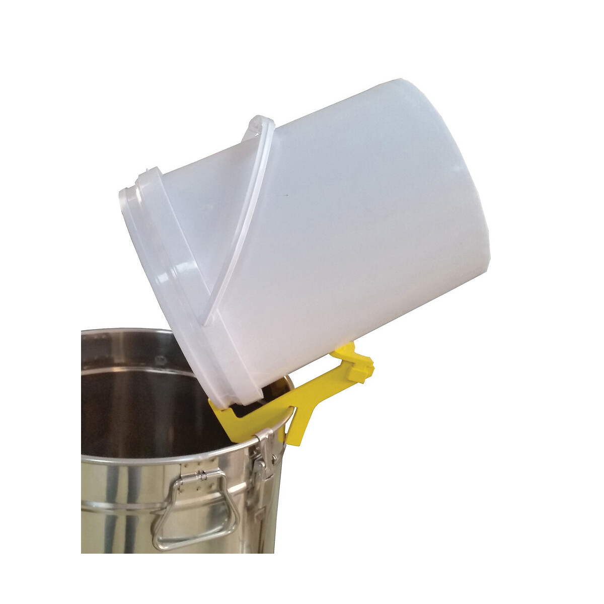 Ce support de seau vous permettra de faire couler votre miel. Il vous suffit de mettre ce support sur le bac dans lequel vous voulez faire couler le miel et d'y poser votre seau rempli de miel. Cet accessoire représente un gain de temps pour l'apiculteur car il peut avoir une autre activité pendant que le miel s'écoule proprement. Ce support de seau convient pour des seaux jusqu'à 20 kg.