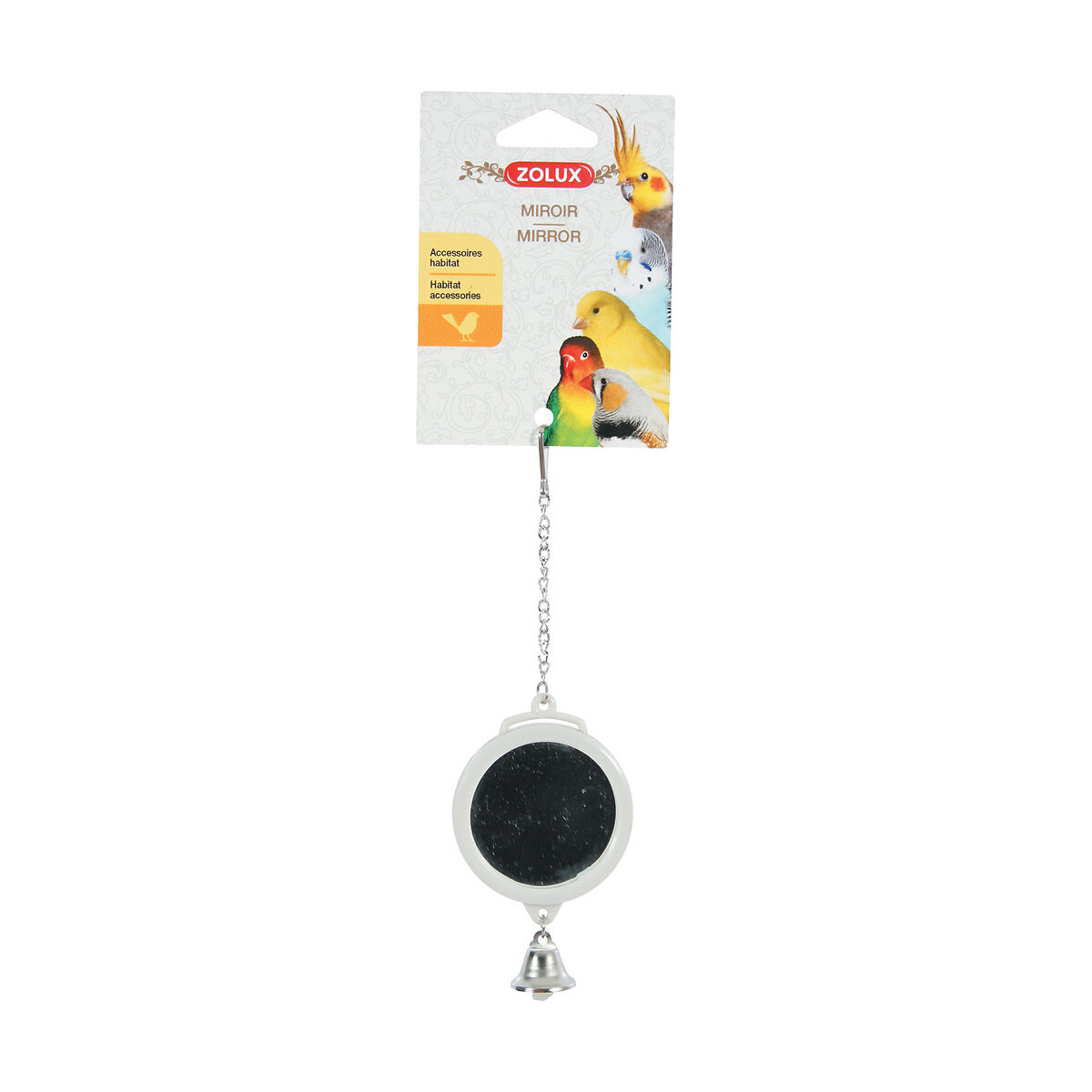 Miroir rond à suspendre jouet pour oiseaux avec cloche