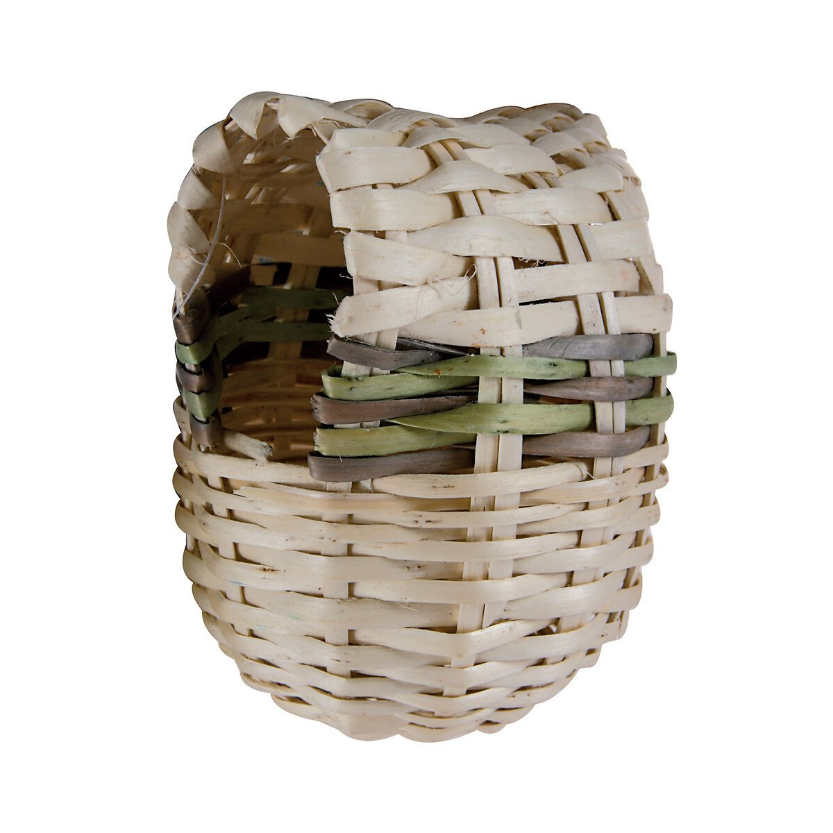 Le nid en osier Pagode apporte une touche d'exotisme dans la cage de vos compagnons ailés ! Nid fermé avec une ouverture sur le haut, il permet à la nichée de profiter d'un maximum d'espace. Son aspect neutre est égayé par une bande de couleur verte et marron. Dimensions : Longueur 8,5 cm x Largeur 9 cm x Hauteur 11 cm.Spécifications techniques