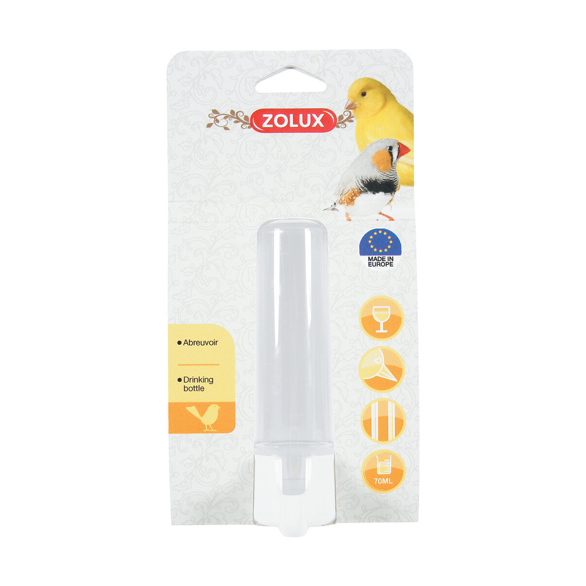 Abreuvoir pour oiseaux à bec droit. Le système de fixation est adapté pour des barreaux verticaux. Contenance : 70 ml.Spécifications techniques