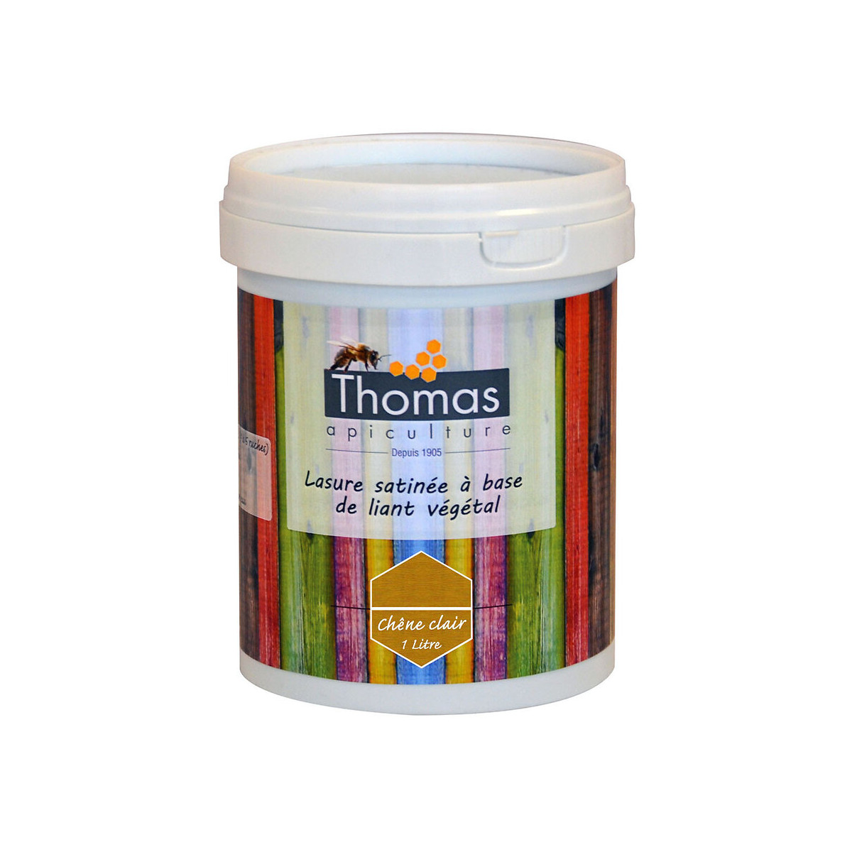 La lasure de protection THOMAS est un produit à très faible dégagement de composés organiques et qui ne produit aucune émanation à effet de serre. Ce produit d'imprégnation donnera un aspect "ciré" et décoratif à vos ruches tout en protégeant durablement le bois, qu'il soit neuf ou ancien, des intempéries. Les bois traités avec les lasures THOMAS sont protégés aussi bien en épaisseur, qu'en surface contre les intempéries, moisissures, champignons. Le support traité est rendu hydrofuge. La qualité des résines utilisées dans cette lasure permet une longévité du traitement bien supérieurs à la moyenne et, le vieillissement de la couche de protection se faisant par farinage la rénovation du traitement se fait simplement par un brossage suivi d'une nouvelle couche de produit. Cette lasure satinée Thomas base végétale vous est proposée en plusieurs couleurs : - Réf. RS1023 : Chêne clair- Réf. RS1024 : Palissandre- Réf. RS1025 : Pin du Nord- Réf. RS1026 : Redwood- Réf. RS1027 : Vert fougère- Réf. RS1028 : Rouge carina- Réf. RS1029 : Jaune abricot- Réf. RS1030 : Bleu caraïbe Astuce d'apiculteur : Sur un même rucher, des ruches de couleurs différentes aideront les abeilles à s'orienter, réduisant ainsi les risques de dérives.
