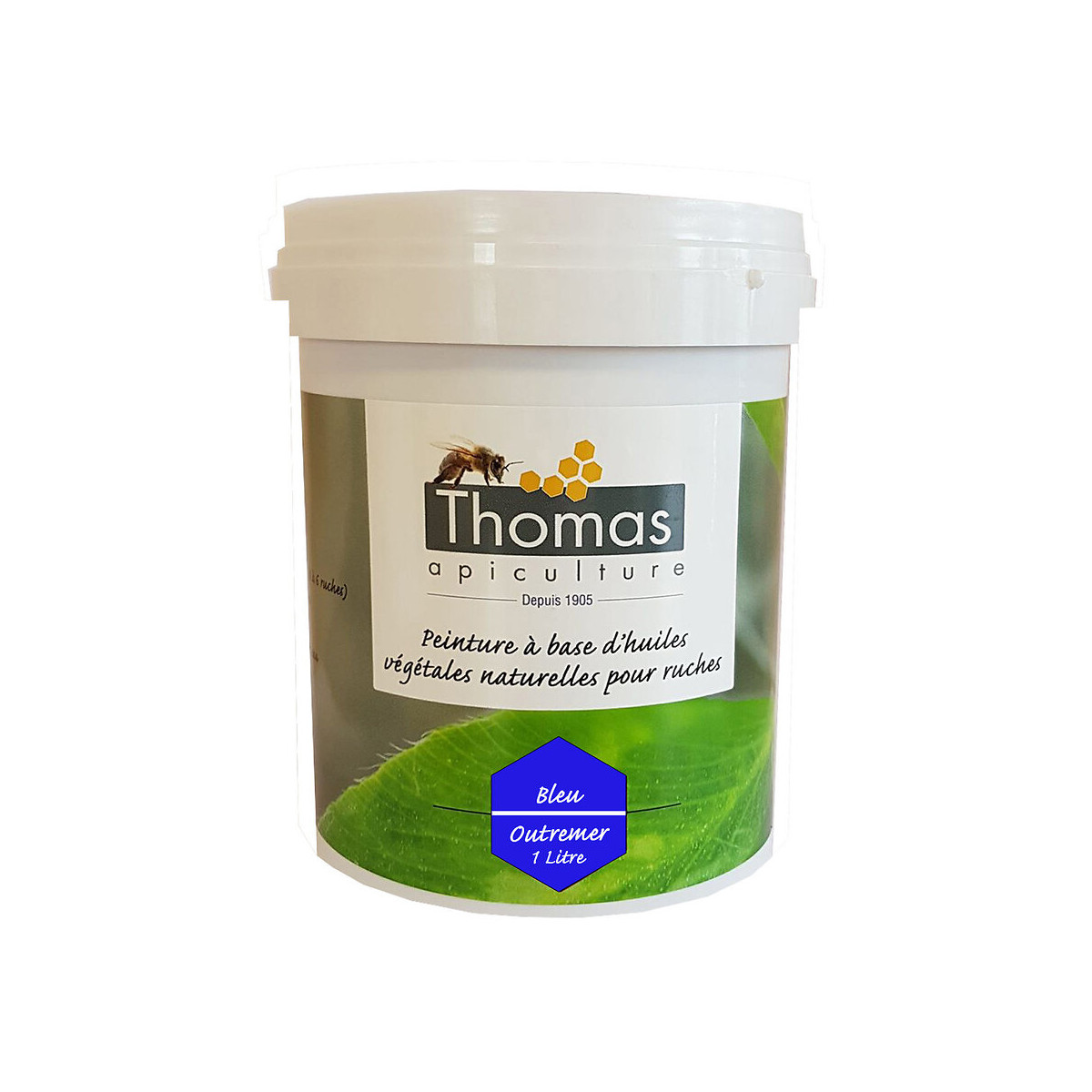 Notre peinture base végétale Thomas est hydrodiluable et ne pollue pas, microporeuse, antifongique, anticryptogamique (anti-champignon, anti-mousse), elle est sans danger pour les abeilles. Elle peut être utilisée en apiculture BIO. Sans composé organique volatil de synthèse, ni solvant, elle ne pollue pas, résiste très bien aux intempéries et est utilisable en apiculture BIO. Notre peinture base végétale peut être utilisée sur les ruches en polystyrène et les toitures métalliques après léger ponçage de surface pour le galva. La teinte aluminium, de par sa formulation spéciale, protège les ruches contre la chaleur et les tempère par réflexion des U. V. Son séchage est rapide. Cette peinture Thomas base végétale vous est proposée en plusieurs couleurs : - Réf. RS1001 : Jaune- Réf. RS1002 : Alu- Réf. RS1003 : Bleu- Réf. RS1004 : Vert phtalo- Réf. RS1005 : Violet- Réf. RS1006 : Oxyde de fer rouge- Réf. RS1007 : Oxyde jaune- Réf. RS1018 : Bleu outremer- Réf. RS1019 : Brun terre- Réf. RS1020 : Vert olive Astuce d'apiculteur : Sur un même rucher, des ruches de couleurs différentes aideront les abeilles à s'orienter, réduisant ainsi les risques de dérives.