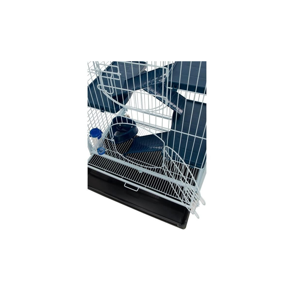 Cage verticale et généreuse - Dotée d'un tiroir en plastique et de 2 portes qui se ferment avec un loquet - Conçue pour accueillir et créer plusieurs zones de jeu, de repos a votre rongeur - Dispose de 3 plateformes modulables en hauteur, de 3 échelles, d'un biberon, de 4 roulettes et d'une gamelle - Dimensions : 64x44x93cm.Spécifications techniques