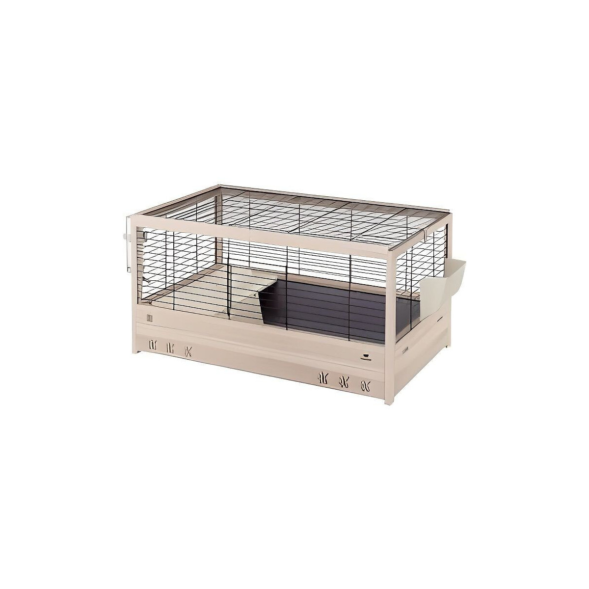 Cage pour cochons d'inde en bois de pin nordique, aux normes FSC, équipée d'une maisonnette, d'une écuelle, d'un abreuvoir et d'un ratelierSpécifications techniques