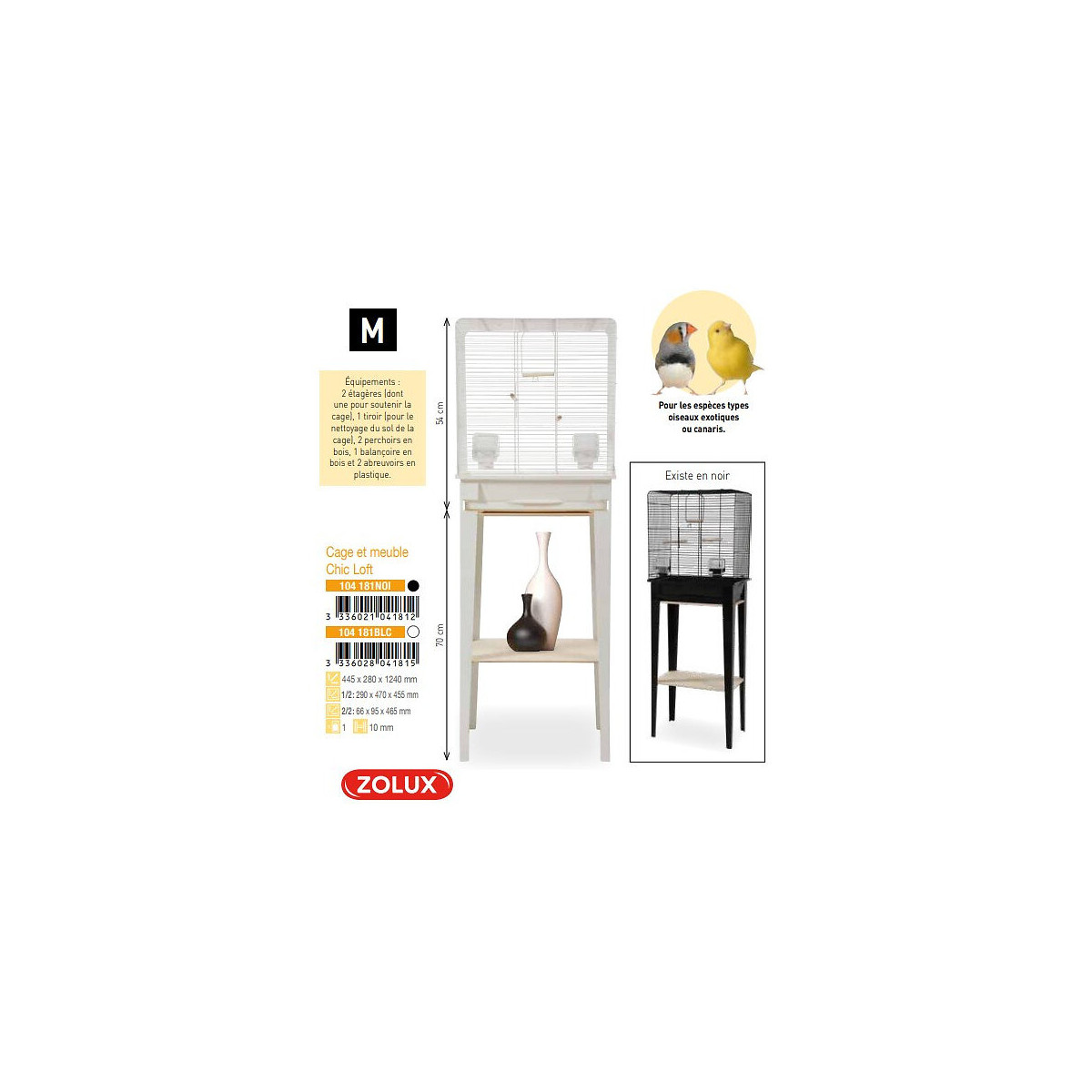 Cage Et Meuble Chic Loft. Taille M. 44 X 28 X Hauteur 124 Cm. Couleur Blanc. - Zolux - Zo-104181blc