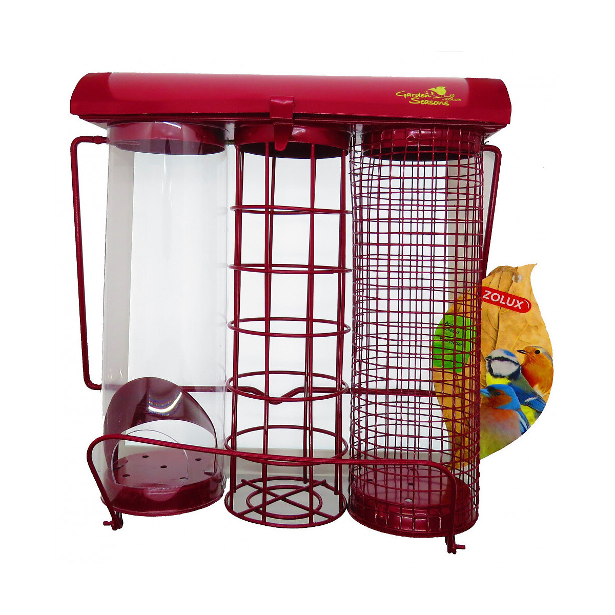 Mangeoire Trio Grenat. 20 X 9 X Hauteur 22.5 Cm . Pour Oiseaux - Zolux - Zo-170117