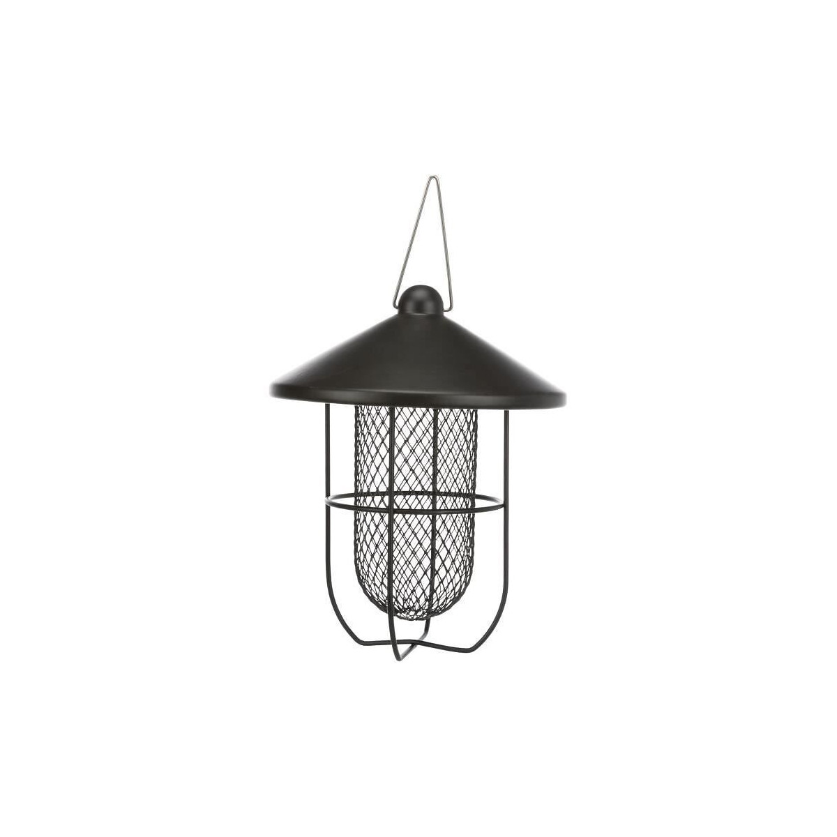 Distributeur de cacahuetes - En métal, revetement en poudre et finition satiné - Design moderne de haute qualité - Grille extérieure pour se poser et reposer - Facile a remplir grâce au toit détachable - a suspendre - 700 ml et 19 × 24 cm - Noir - Pour oiseauSpécifications techniques