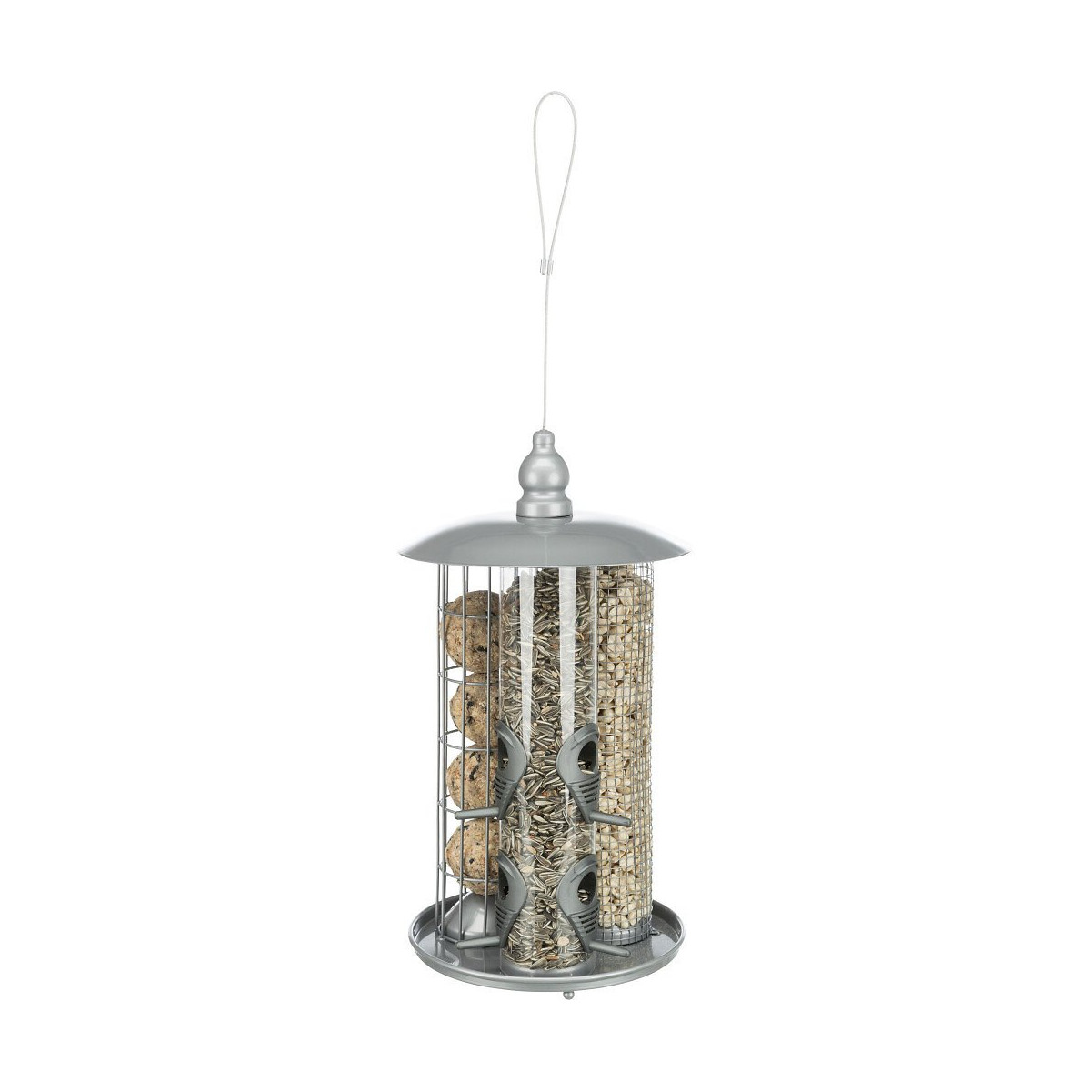 Mangeoire a oiseaux, Station d'alimentation 3 en 1, mangeoires extérieur pour oiseaux. en métal, revêtement en poudre/en plastique. 3 compartiments de nourriture séparés, permettent d'offrir plusieurs types de nourriture à la fois. la station contient un mangeoire boule de graisse, un distributeur de noix et un mangeoire en forme de colonne. mangeoire avec quatre ouvertures de nourriture et quatre perchoirs (790 ml). mangeoire boule de graisse pour quatre boules de graisses ( ø 6 cm ). distributeur de noix pour beaucoup de noix/cacahuètes ( 790 m l ). remplissage par dessus. à suspendre. Dimensions: ø 20 × 36,5 cm. Hauteur: 36,5 cm. Mangeoire a oiseaux, Station d'alimentation 3 en 1, mangeoires extérieur pour oiseaux. en métal, revêtement en poudre/en plastique. 3 compartiments de nourriture séparés, permettent d'offrir plusieurs types de nourriture à la fois. la station contient un mangeoire boule de graisse, un distributeur de noix et un mangeoire en forme de colonne. mangeoire avec quatre ouvertures de nourriture et quatre perchoirs (790 ml). mangeoire boule de graisse pour quatre boules de graisses ( ø 6 cm ). distributeur de noix pour beaucoup de noix/cacahuètes ( 790 m l ). remplissage par dessus. à suspendre. Dimensions: ø 20 × 36,5 cm. Hauteur: 36,5 cm. Photo non contractuelle, car il y a plusieurs vendeurs sur une même fiche produit.Spécifications techniques