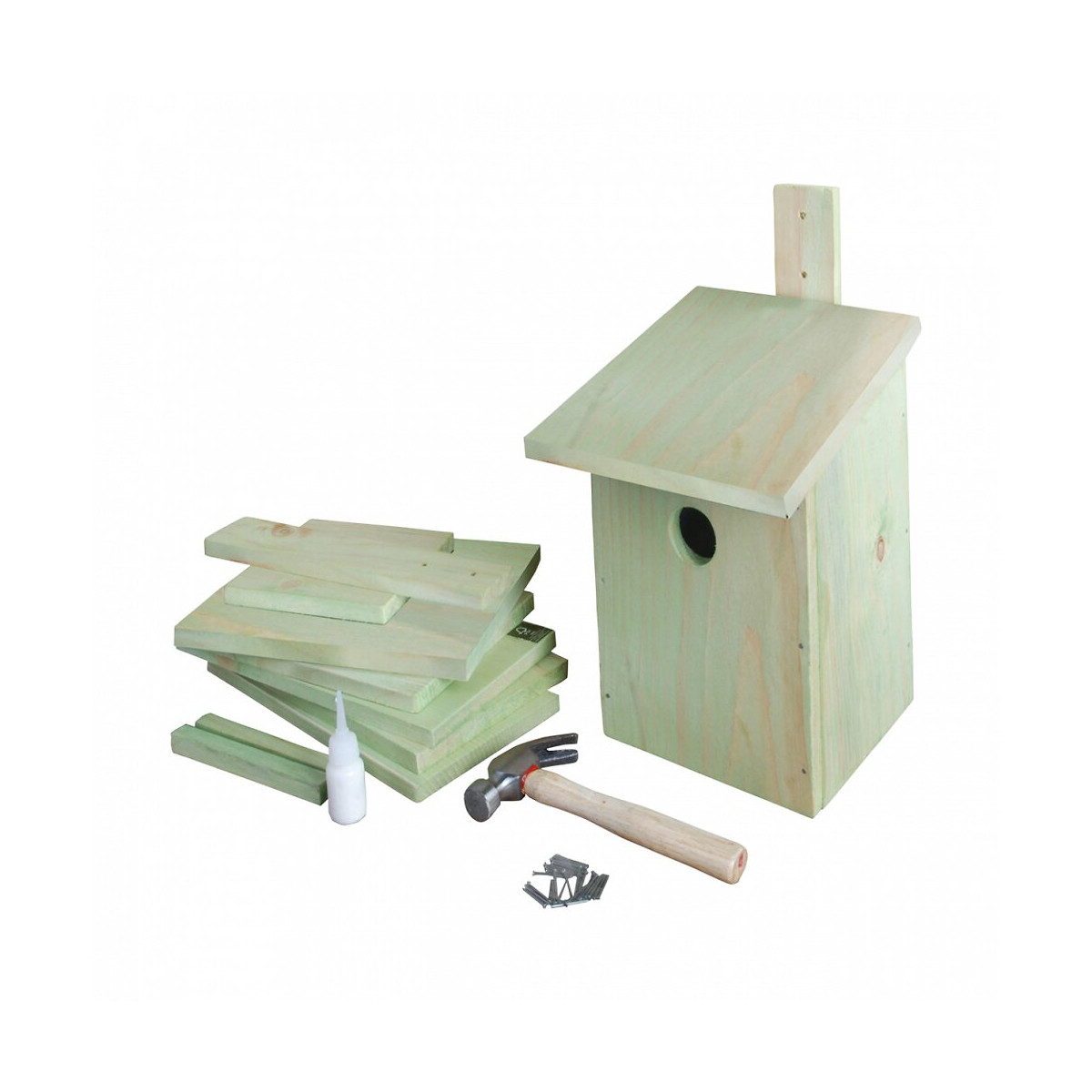 Un nichoir ne devrait manquer dans aucun jardin. Construisez votre propre nichoir avec cet ensemble de construction complet ! Ce nichoir convient à la mésange bleue. Outre la mésange bleue, la mésange huppée, le moineau arboricole et le moucherolle pie aussi aiment se nicher dans ce nichoir. Accrochez le nichoir dans un endroit calme et un peu abrité, donc pas directement au soleil ou du côté de la pluie, avec une trajectoire de vol libre pour l'oiseau. L'automne est le meilleur moment pour nettoyer le nichoir. En hiver, les oiseaux utilisent souvent le nichoir comme abri. Ensemble comprenant un marteau, des clous et de la colle à bois. S'ouvre par le bas. Dimensions du produit en cm: L 21,3 x l 17 x H 23,3. Un nichoir ne devrait manquer dans aucun jardin. Construisez votre propre nichoir avec cet ensemble de construction complet ! Ce nichoir convient à la mésange bleue. Outre la mésange bleue, la mésange huppée, le moineau arboricole et le moucherolle pie aussi aiment se nicher dans ce nichoir. Accrochez le nichoir dans un endroit calme et un peu abrité, donc pas directement au soleil ou du côté de la pluie, avec une trajectoire de vol libre pour l'oiseau. L'automne est le meilleur moment pour nettoyer le nichoir. En hiver, les oiseaux utilisent souvent le nichoir comme abri. Ensemble comprenant un marteau, des clous et de la colle à bois. S'ouvre par le bas. Dimensions du produit en cm: L 21,3 x l 17 x H 23,3. Photo non contractuelle, car il y a plusieurs vendeurs sur une même fiche produit.Spécifications techniques