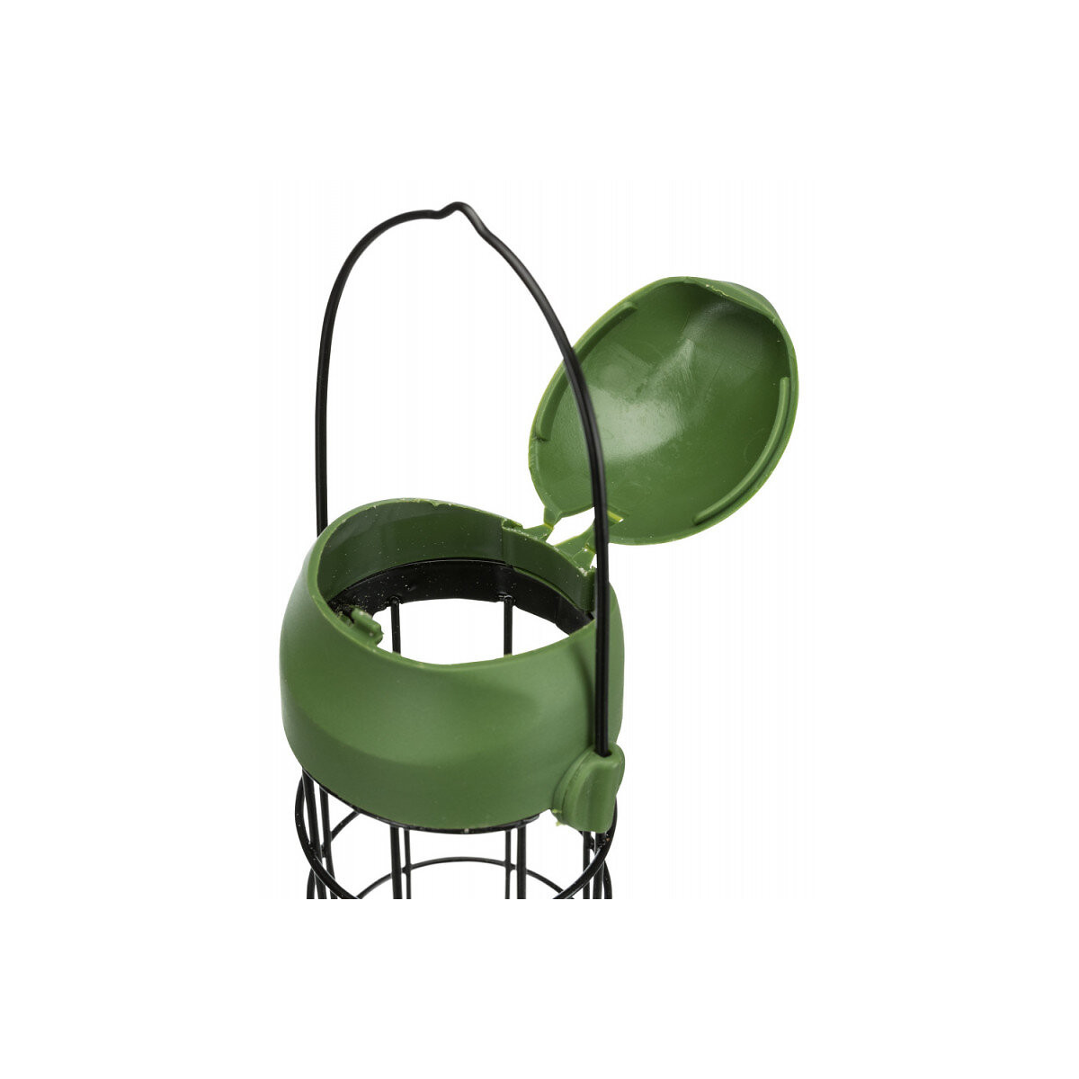 Mangeoire boule de graisse pour oiseaux. facile à remplir grâce au couvercle à charnière et à la base amovible. article 55626 convient à 3 boules de graisse. en plastique/métal. Dimensions: ø 8 × 22 cm. avec la anse 29 cm. Coloris: vert. Mangeoire boule de graisse pour oiseaux. facile à remplir grâce au couvercle à charnière et à la base amovible. article 55626 convient à 3 boules de graisse. en plastique/métal. Dimensions: ø 8 × 22 cm. avec la anse 29 cm. Coloris: vert. Photo non contractuelle, car il y a plusieurs vendeurs sur une même fiche produit.Spécifications techniques